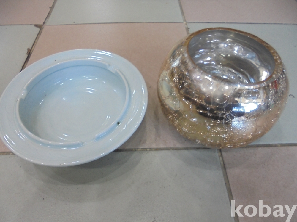 자석이 붙지않는 은요강같은 아주좋은특수강의 동그란 항아리로 아이요강하면아주좋을것같고 백자재털이는 작가명과 꽃초놓는자리도있는