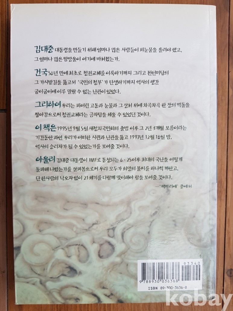 설명: 김대중대통령을 만들기 위해 얼마나 많은 사람들이 피눈물을 흘려야 했고, 그 얼마나 많은 땀방울이 여기에 미첬겠는가.