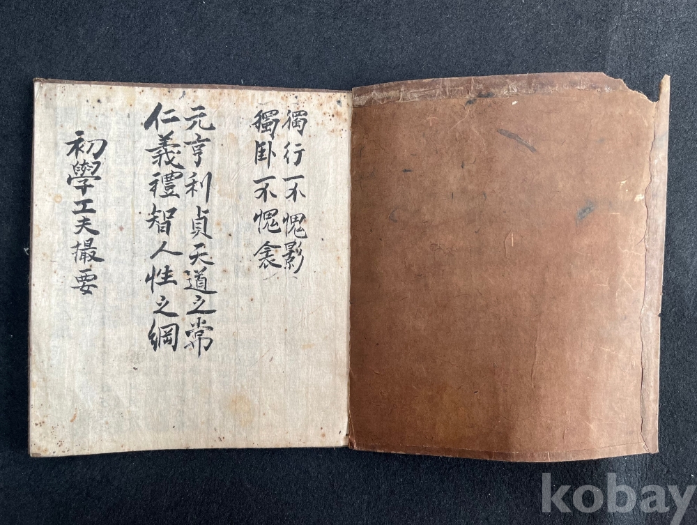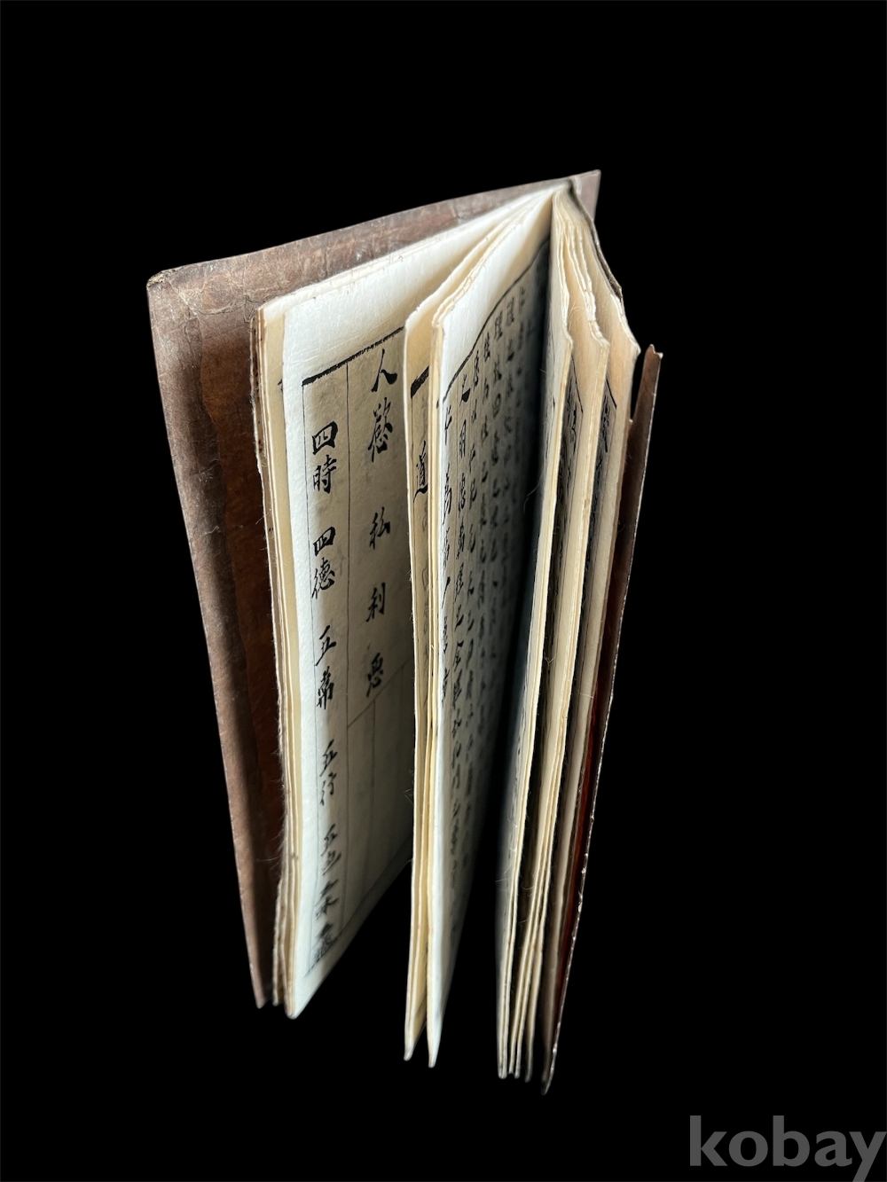 갈색 염색지 표지와 전통 선장제본, 자연스러운 세월감이 보입니다.