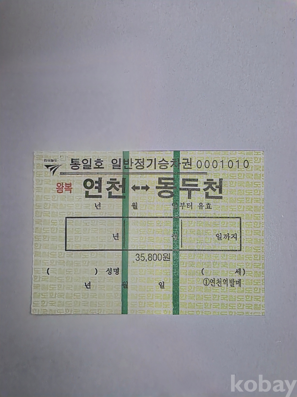 옛날 통일호 종이형 정기 승차권입니다