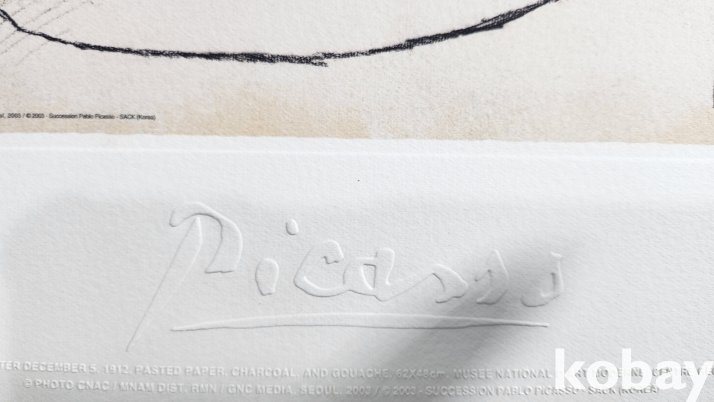 스폐인의 유명 서양화가 피카소(Picasso ) 사인이 보이는 압인 판화입니다,