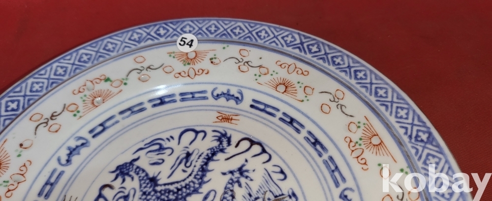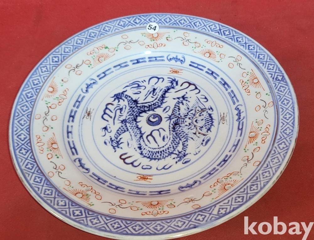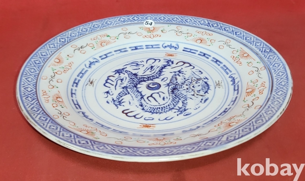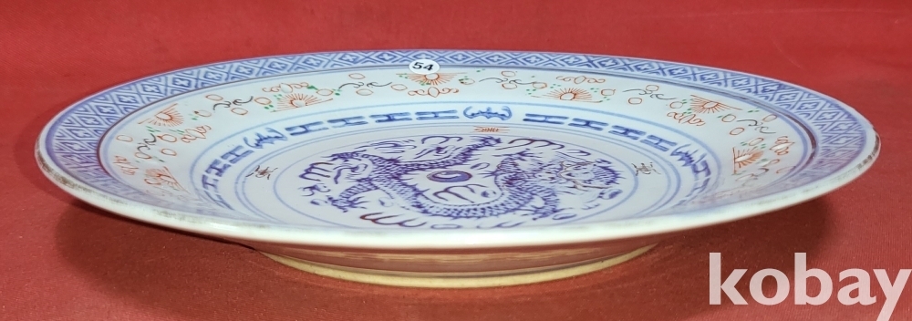 청나라 연대 경덕진요 청화 유리홍 용문양 금채 접시입니다,