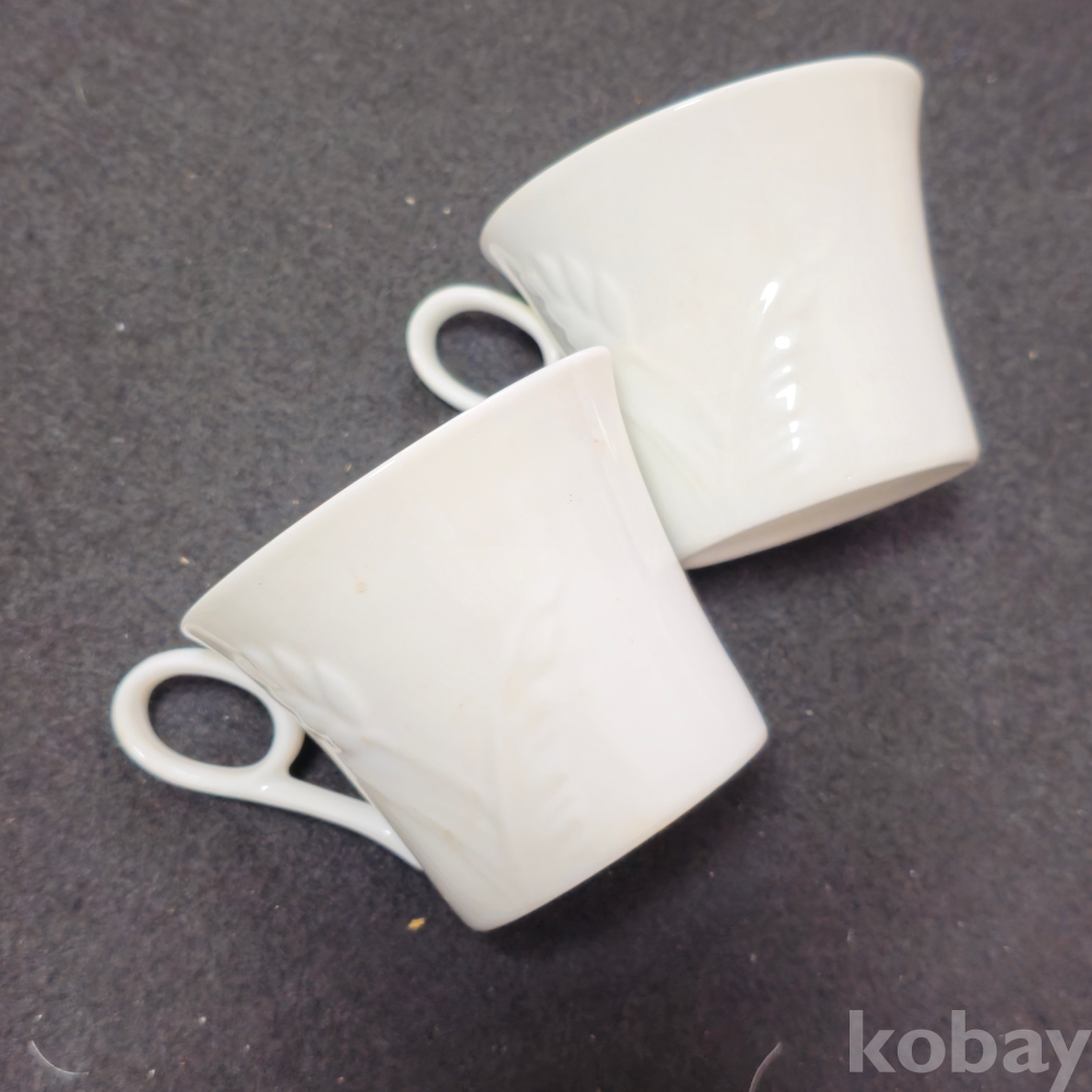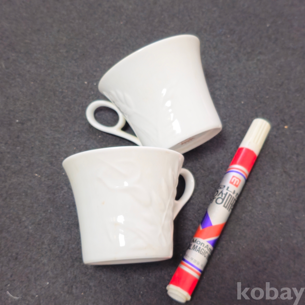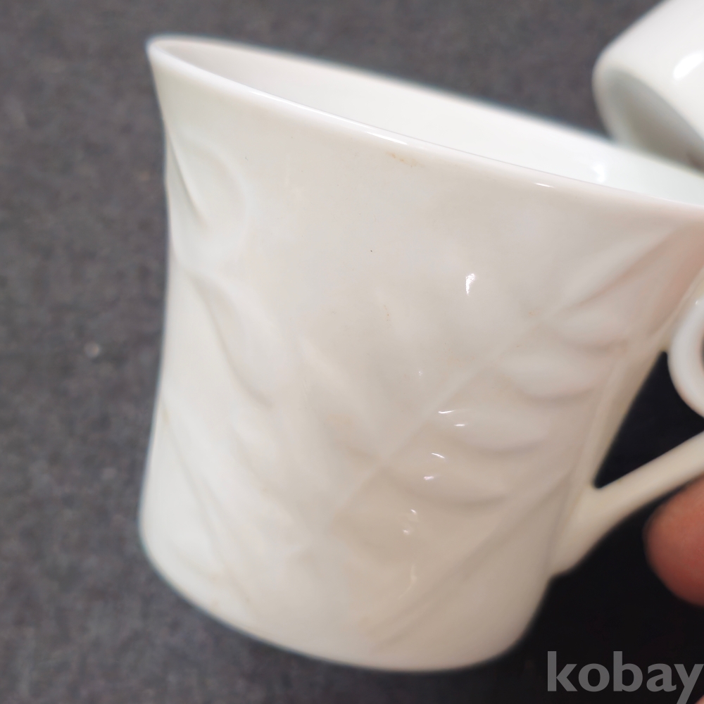 (((도자기커피잔))) 오래전 나뭇잎 양각 커플 도자기 커피잔 (요업개발)