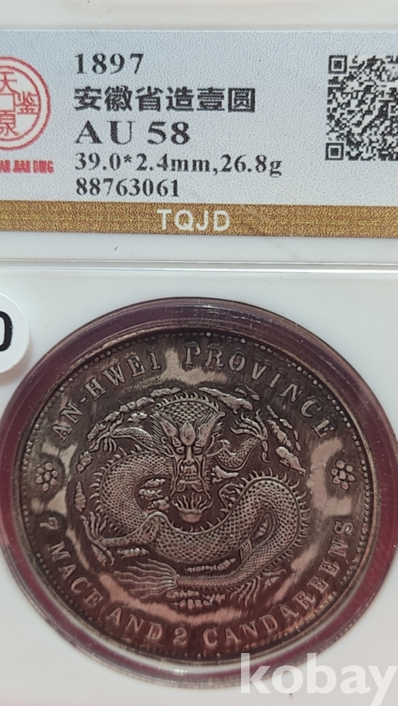 1897년 큐알코드(QR CODE)가 함께하는 은색 광서 원보 기념 밀봉된 상태입니다,