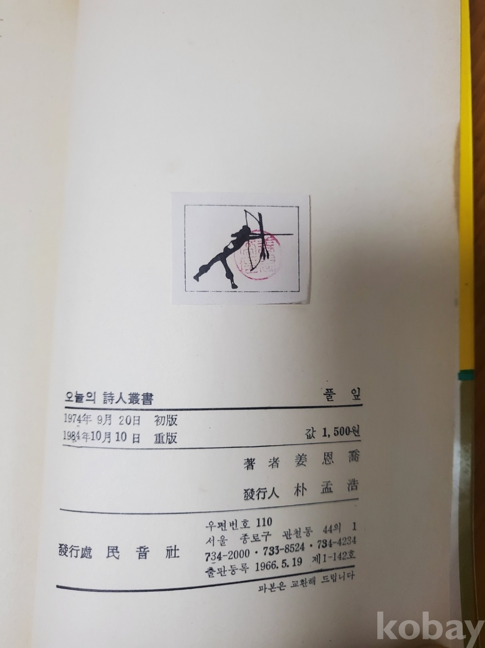 1. 풀잎, 강은교, 민음사, 1984년, 125쪽, 상태 상, 사진 참조