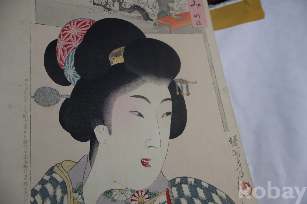 섬세 정교 우아함 머리카락 처리 등등 얼굴 처리 등등 전세계적인 수집목판화 이며 제작 년도가 보이는 명화 임니다 오른쪽 위에 모서리에는 세월의 흔적이 보임니다