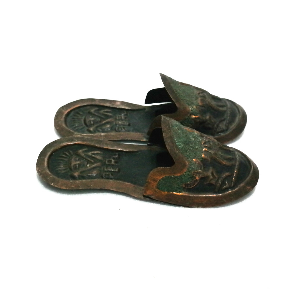 페루에서 황동판으로 만들어진 자그마한 신발모형 핸드메이드 빈티지 장식 입니다.