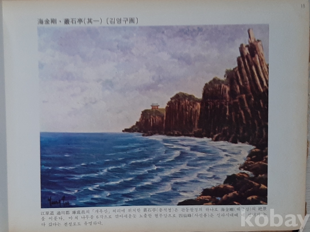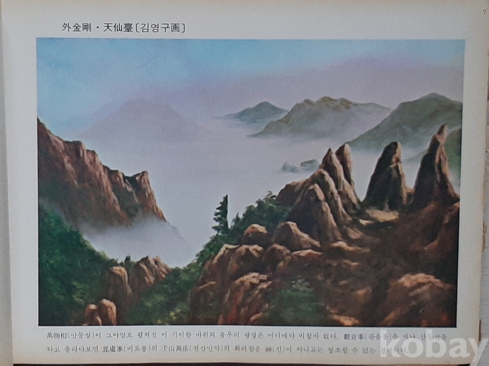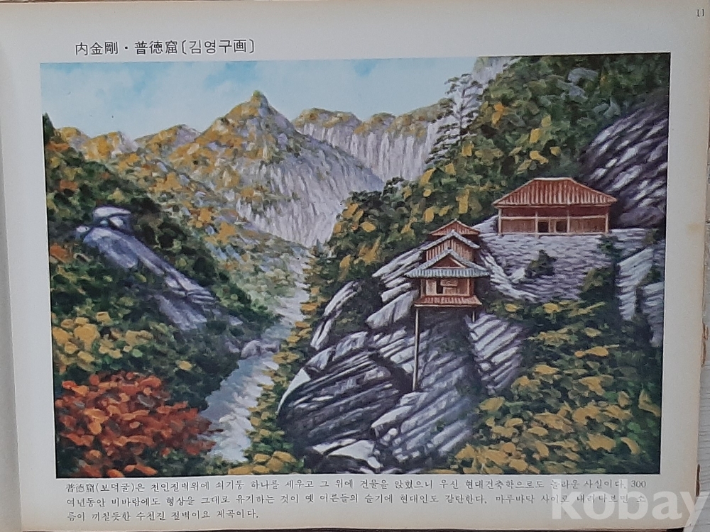 외금강 집선봉, 내금강 보덕굴, 명경대, 해금강 총석정 기1, 총석정 기2 등 김영구 화백의 풍경화 5점 수록. 금강산 사진 수록, 반품불가, 반품시 비용 구매자부담 조건판매, 사이즈는 정확하지 않음