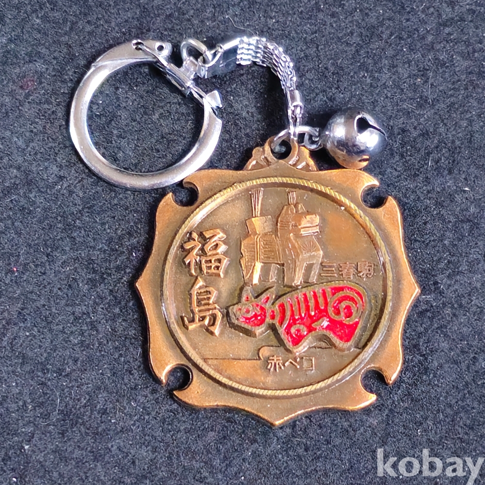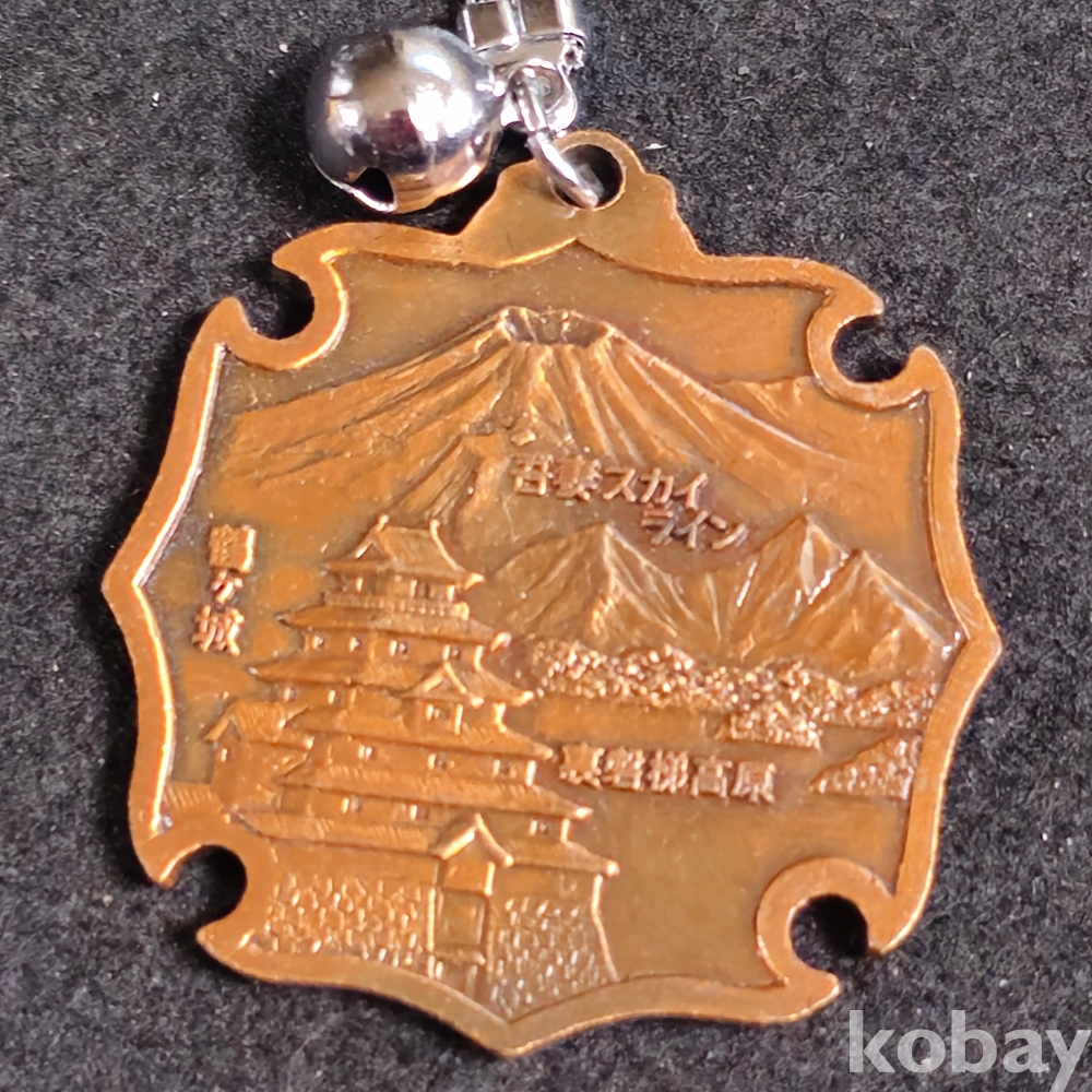 (((관광기념품/키홀더/키링/열쇠고리/가방걸이))) 오래전 일본 후지산 전경 福鳥 관광기념 방울달린 금속 키홀더