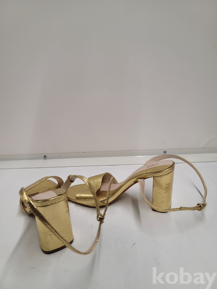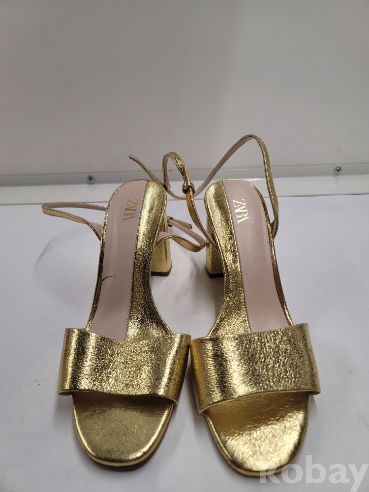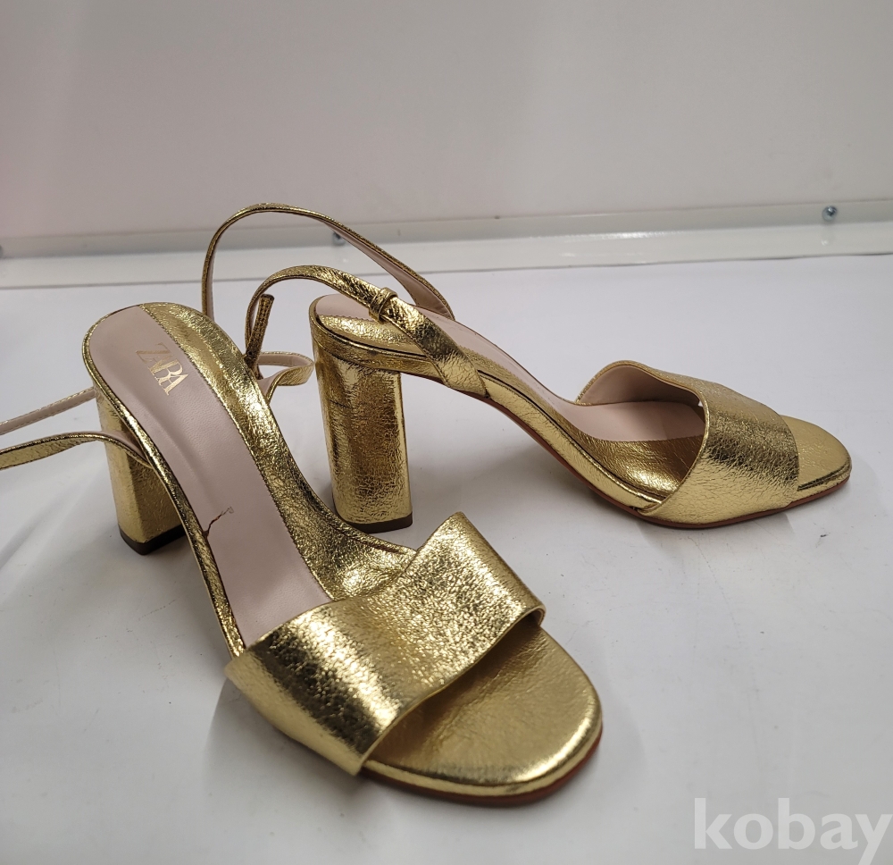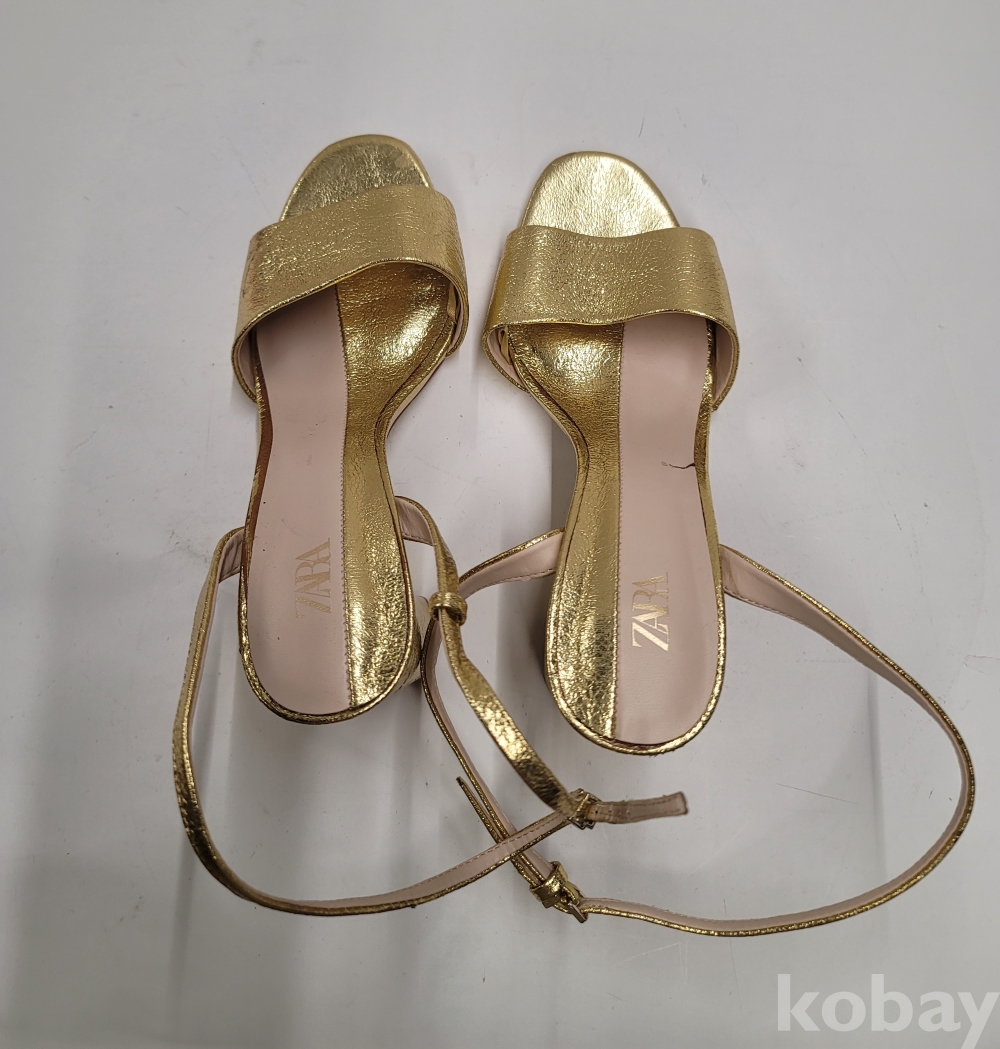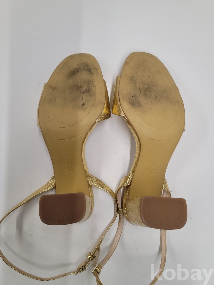 [*천원행복*] S - 3 - 0569 자라 여성 샌들 (금색, 37사이즈, 굽높이 9센티)