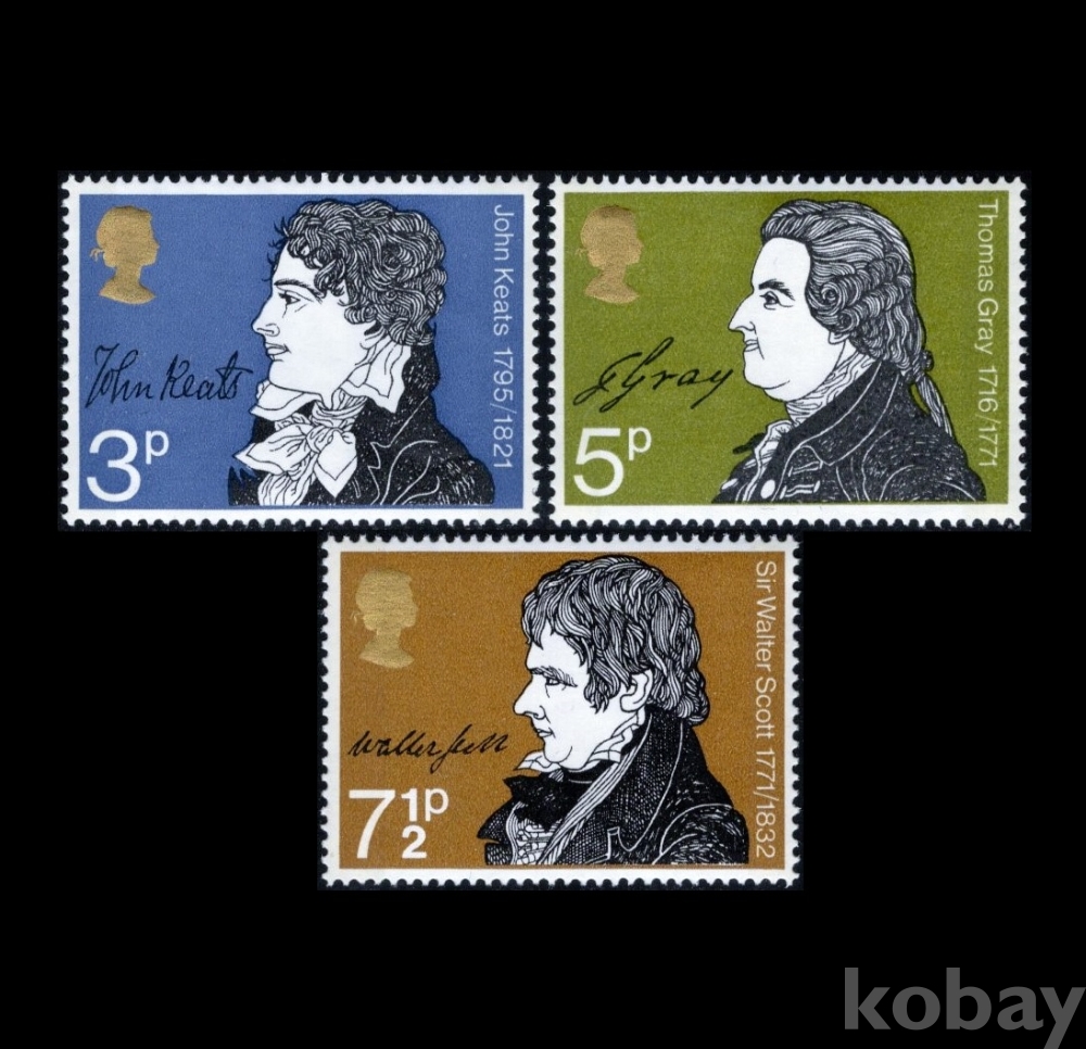 영국) 1971년 작가의 서명(존 키츠,토마스 그레이,월터 스콧) MNH OG