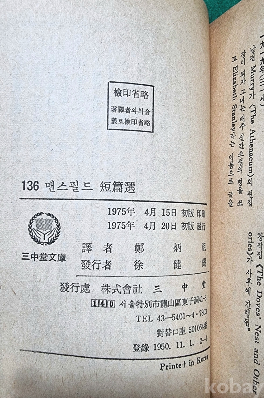 / 포켓용 삼중당 문고 136번 입니다.