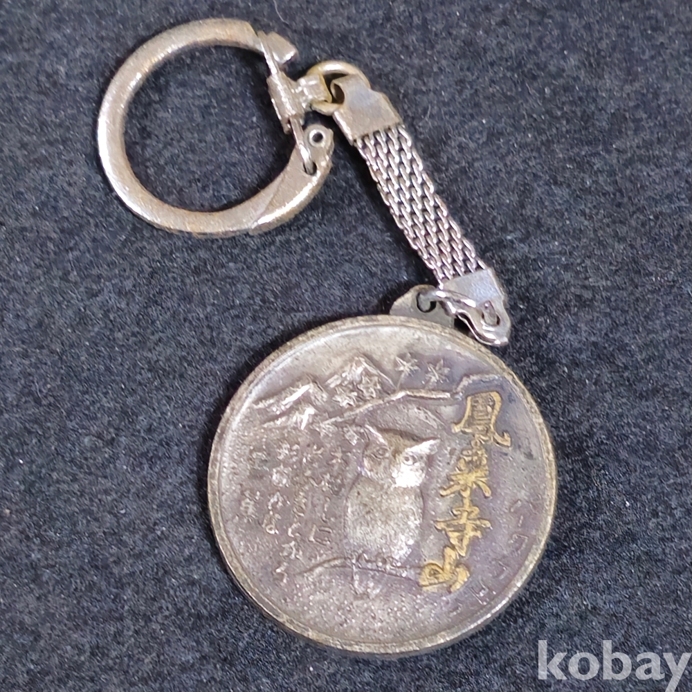 (((관광기념품/키홀더/키링/열쇠고리/가방걸이))) 오래전 일본 일본 風來寺山 등반기념 올빼미모습 금속 키홀더