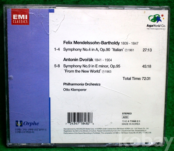 (CD) Mendelssohn - Symphony No.4 in A Op.90 'Italian' / Dvorak - Symphony No.9 'From the New world'...