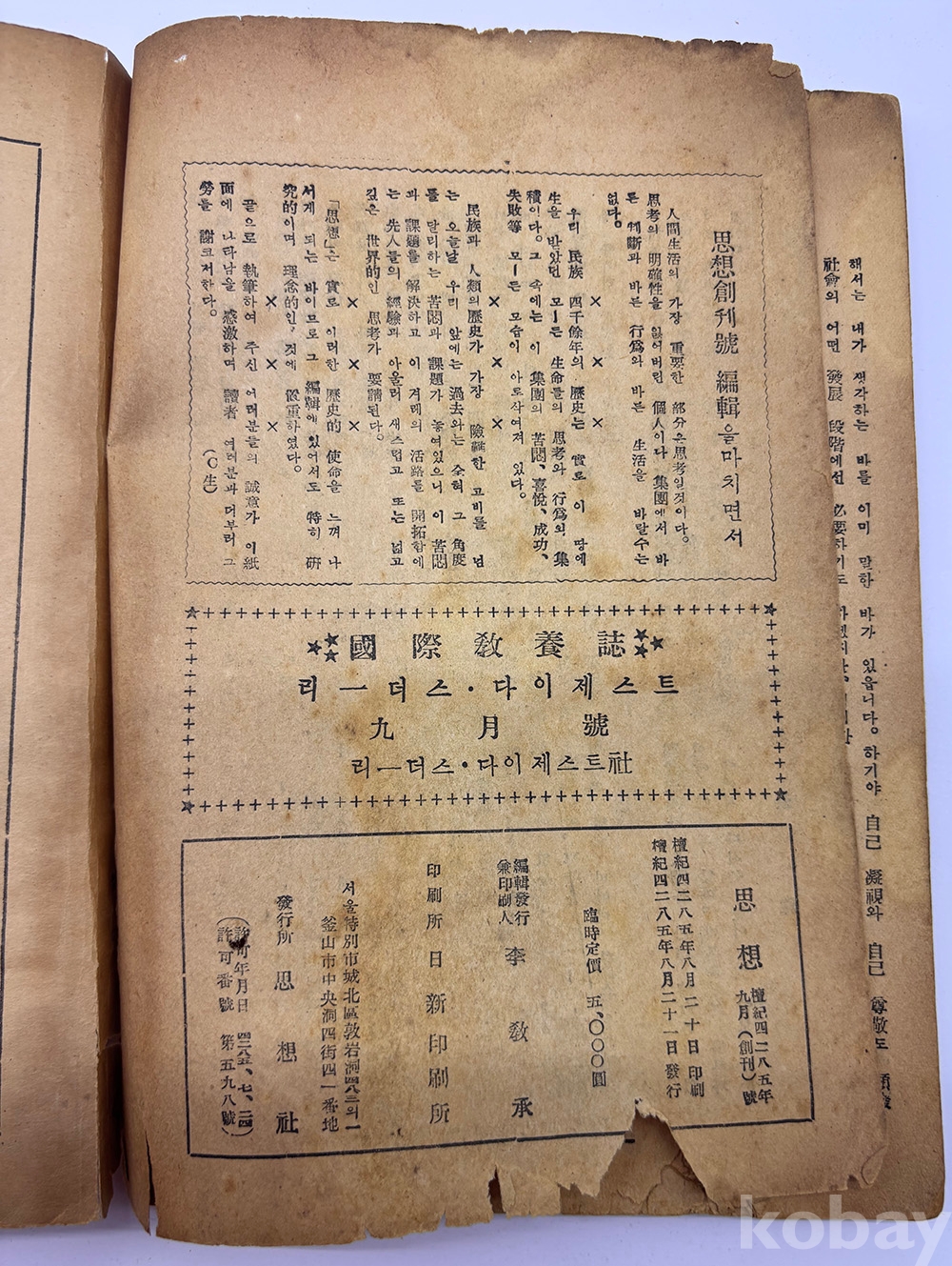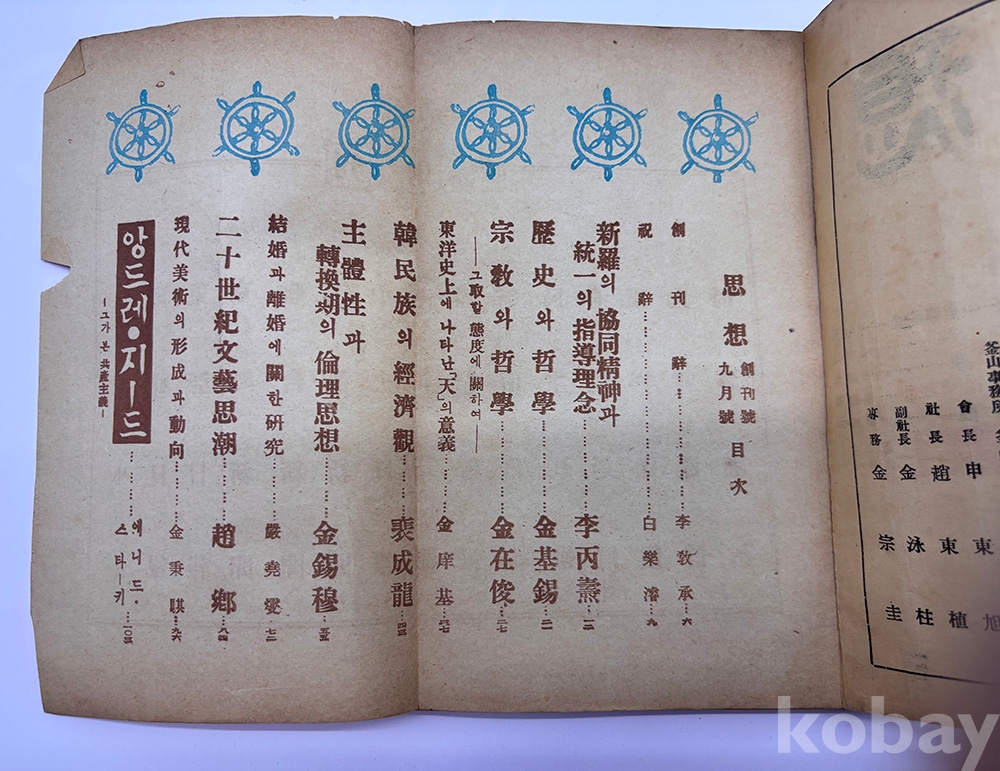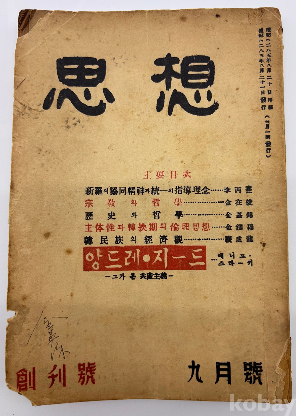 물 품 명 | <좋-았書! 1탄> [44] 1952년 사상사 발행 [사상(思想)] 창간호 1책 | |||||