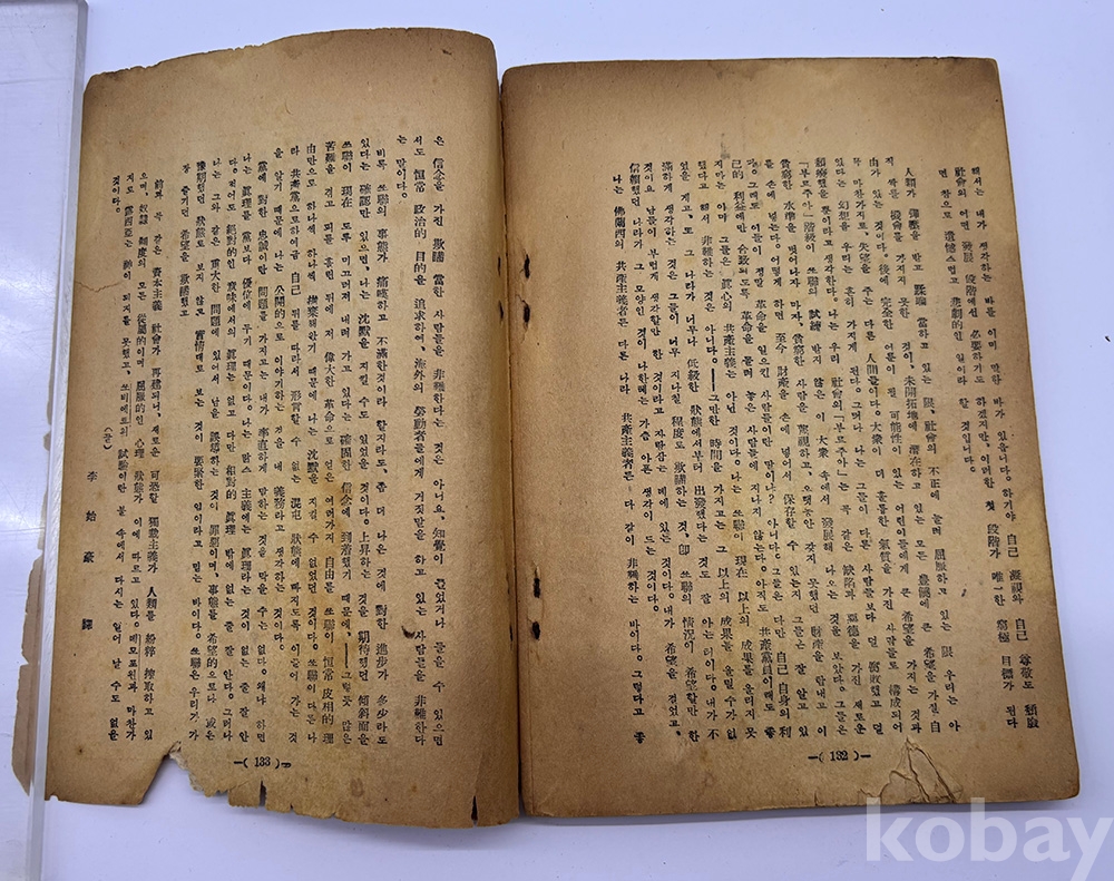 설 명 | 1952년 사상사(思想社)에서 발행한 사상(思想) 창간호 1책이다. 9월호 이며 정치인 백낙준, 이병도 등의 글이 실려있다. 6.25 전쟁 중 창간되었고 문교부(현 교육부)의 산하 국민사상연구원의 기관지였다. 책등과 책표지 손상, 본문 부식 및 낙서 등 신중한 입찰이 필요하다. | |||||