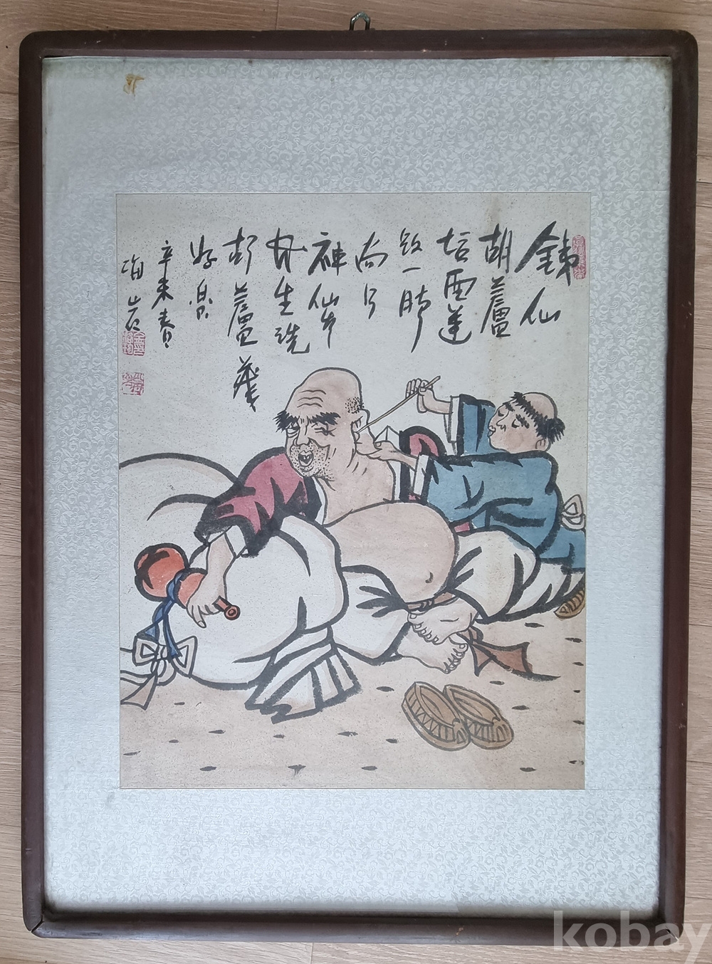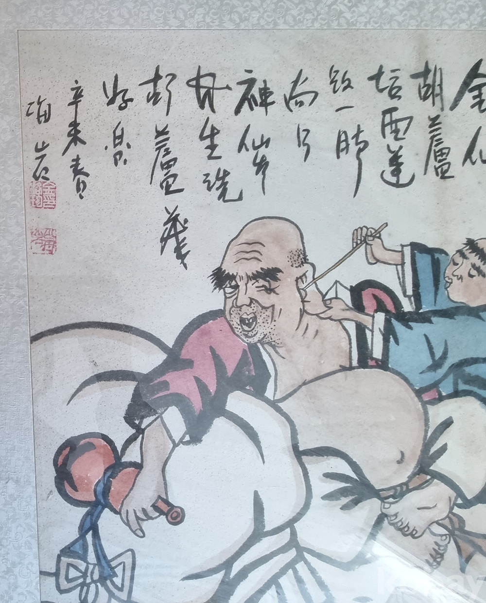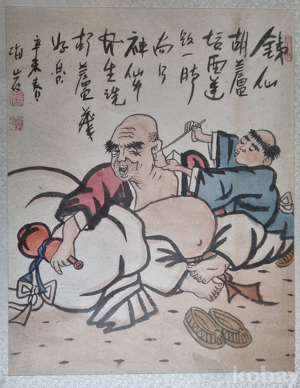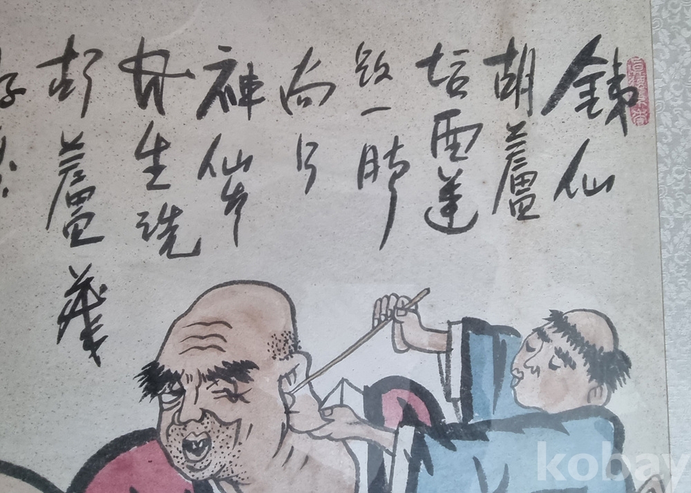 해암 김락준 작가의 해학미가 돋보이는 서화 작품입니다. 익살스러운 인물의