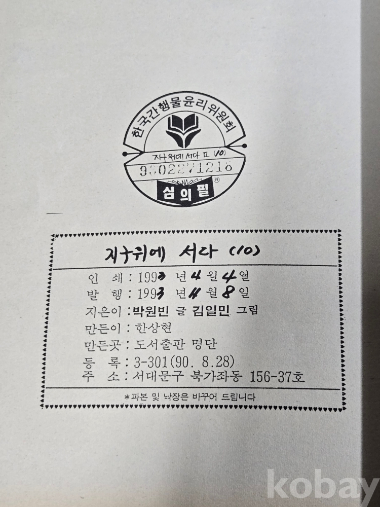 80-90만화방 == 청소년만화 = 박원빈 글. 김일민.그림 = 지구위에서다 10권 완질