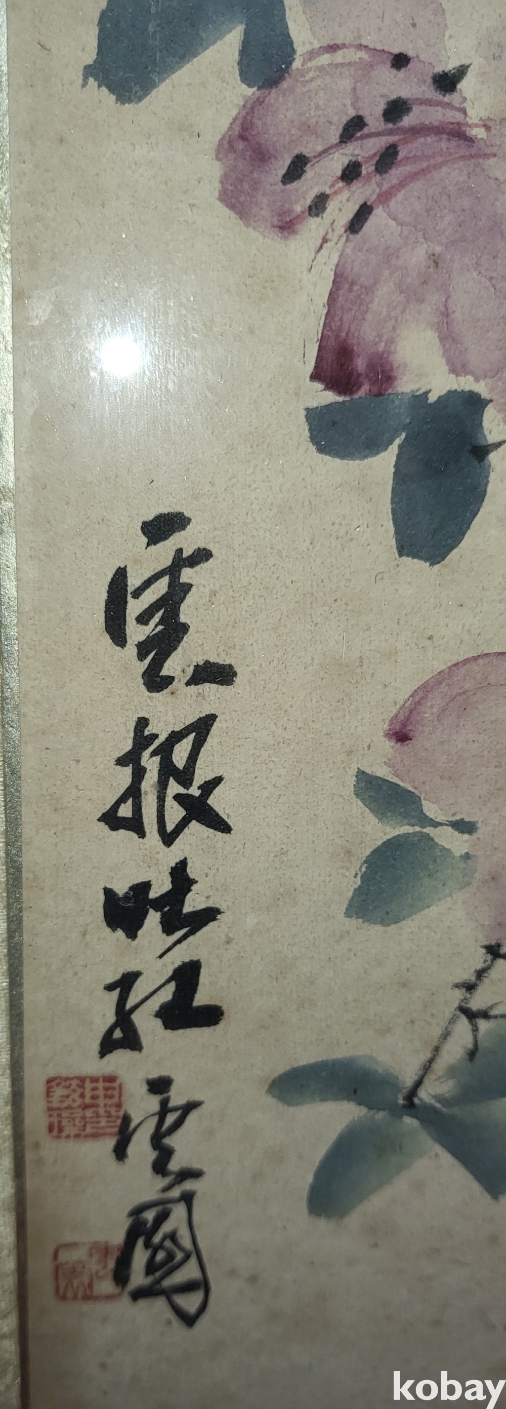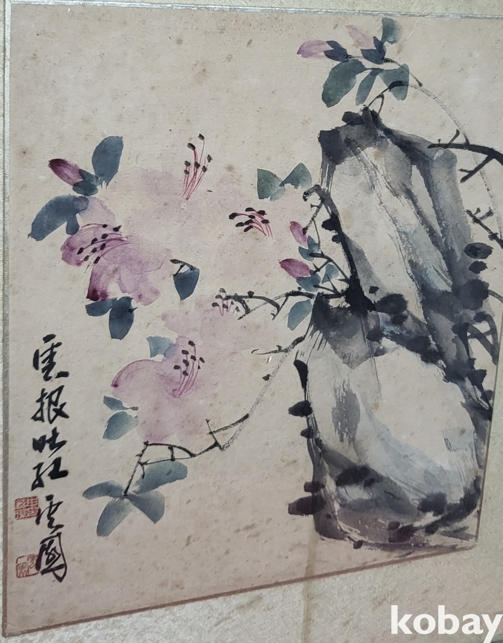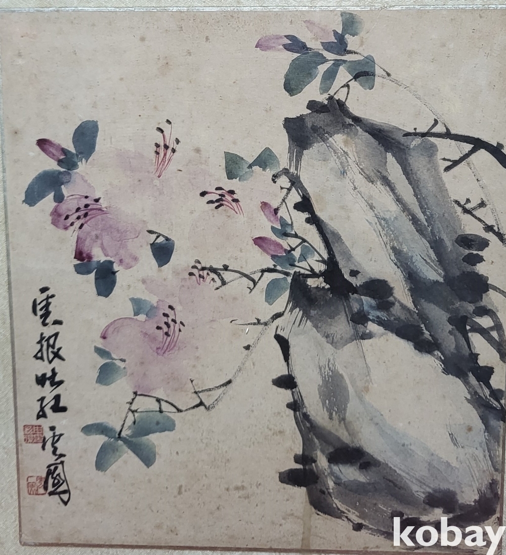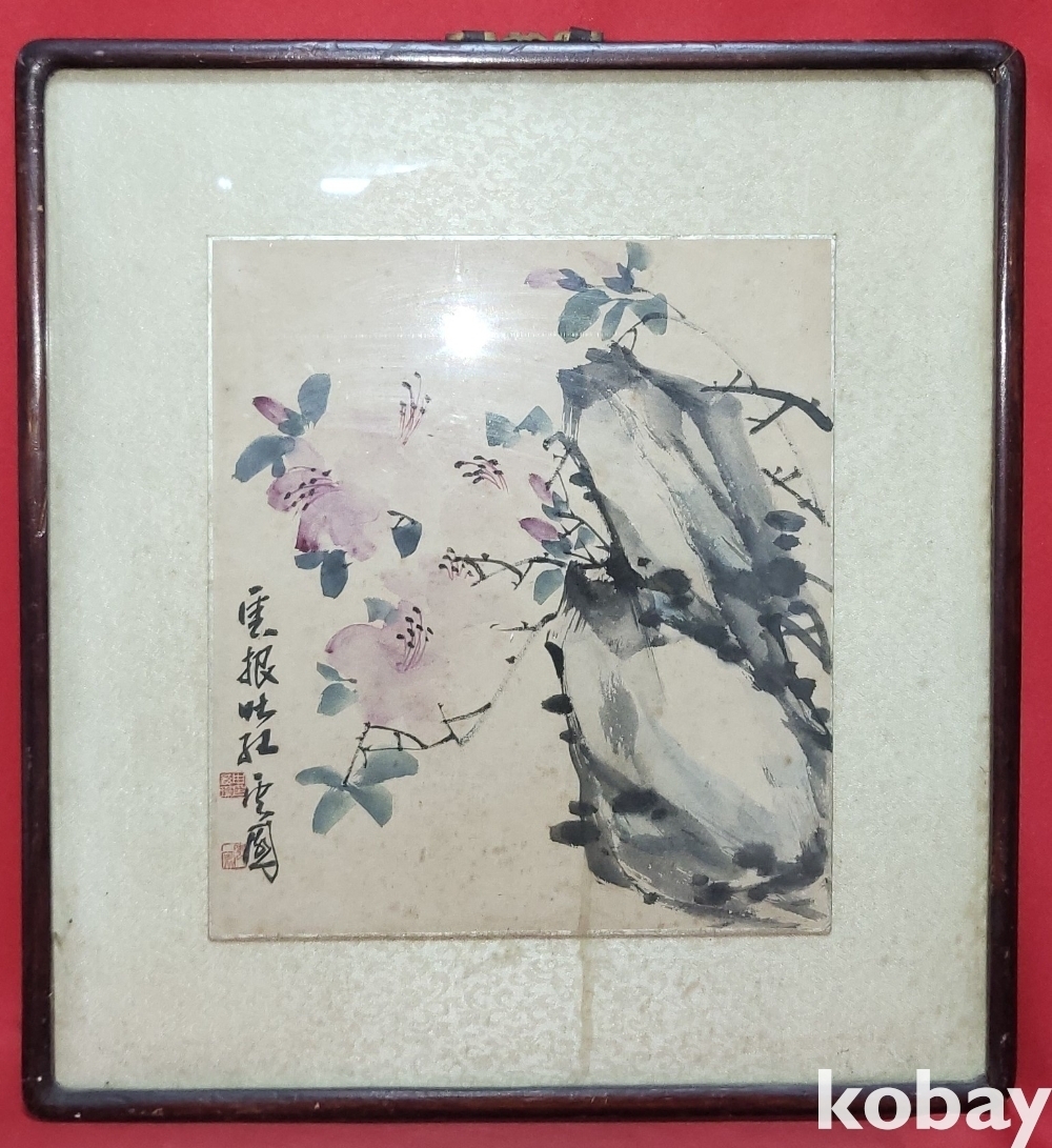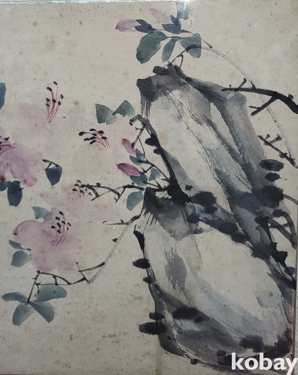 유명화가 운원 신현조 作 괴석에 철죽 그림입니다,