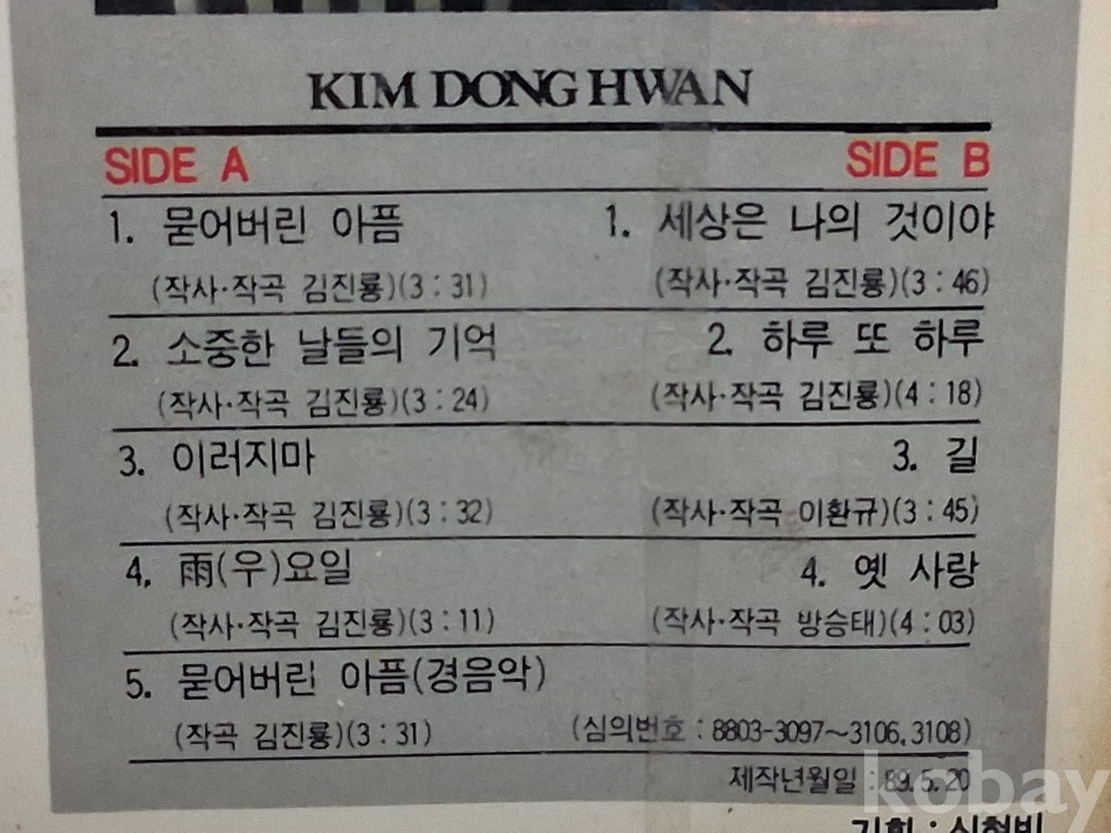미개봉, 김 동 한 1 집 묻어버린아픔 ,,,,카세트테이프