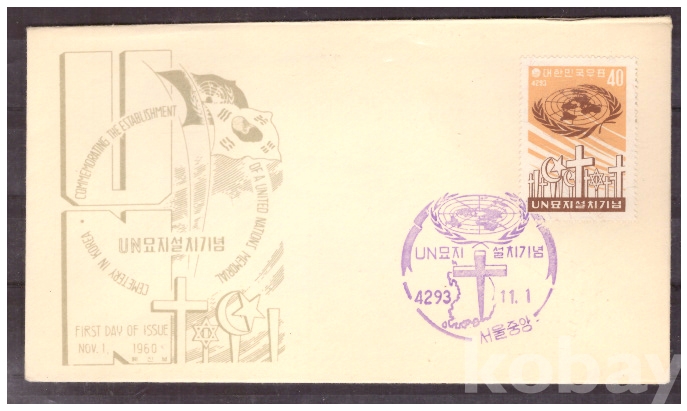 (초일봉피) 1960.11.1 UN묘지 설치 기념 FDC (서울중앙 4293.11.1)