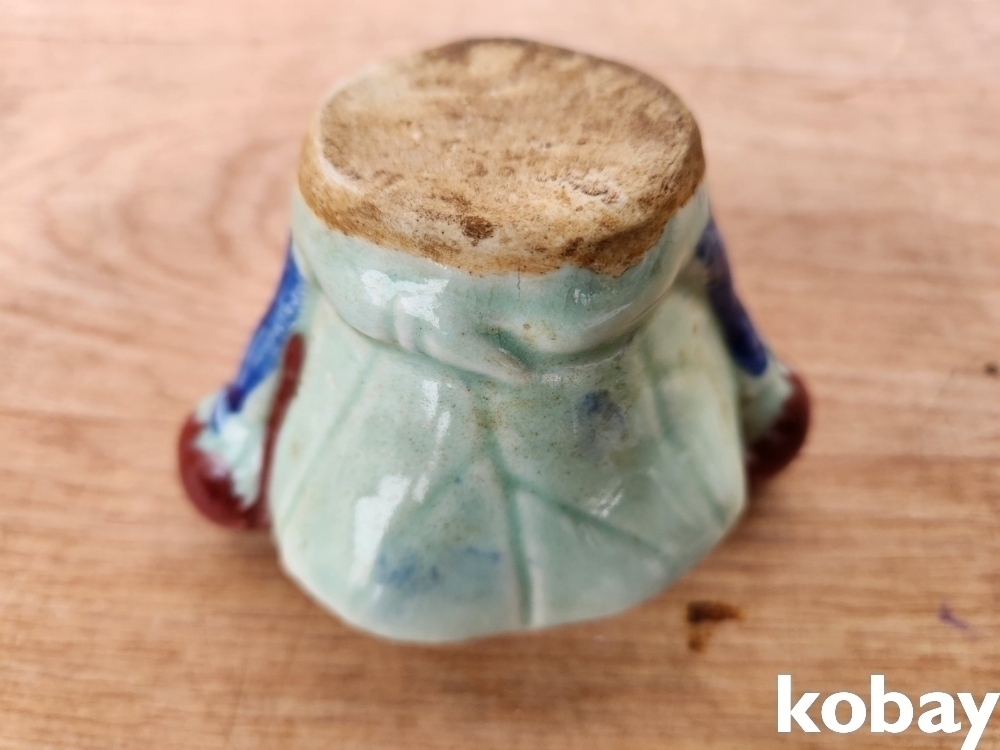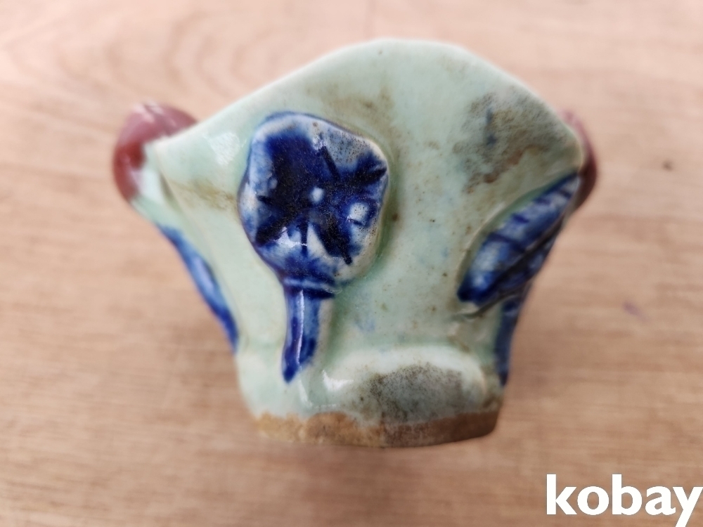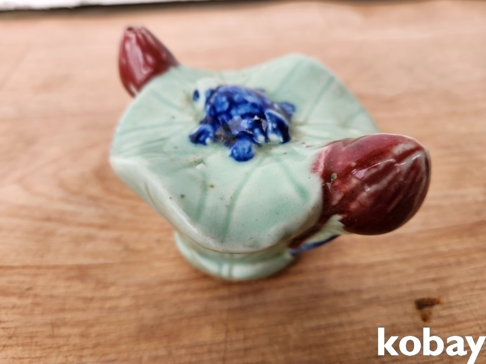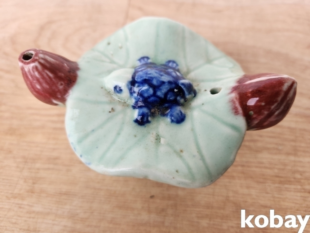 연꽃 위에 개구리(올챙이) 형상 연적 도자기 입니다.