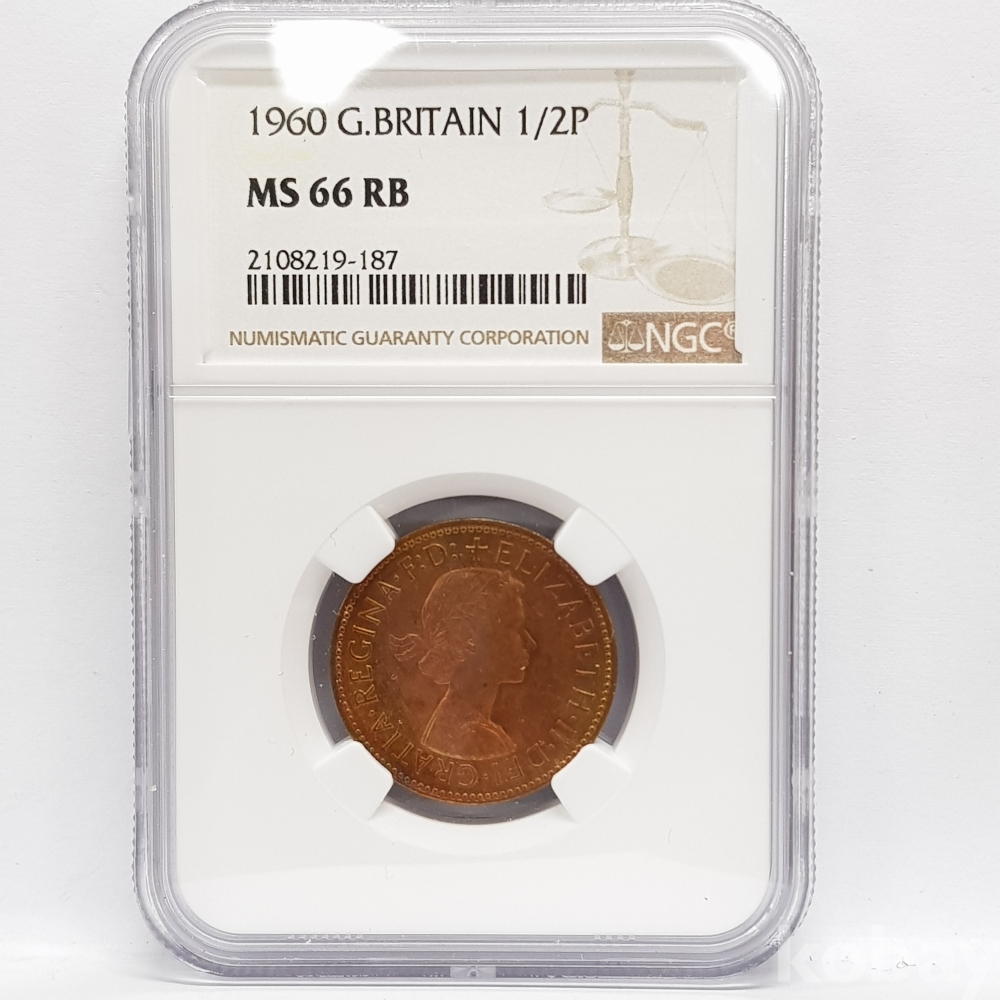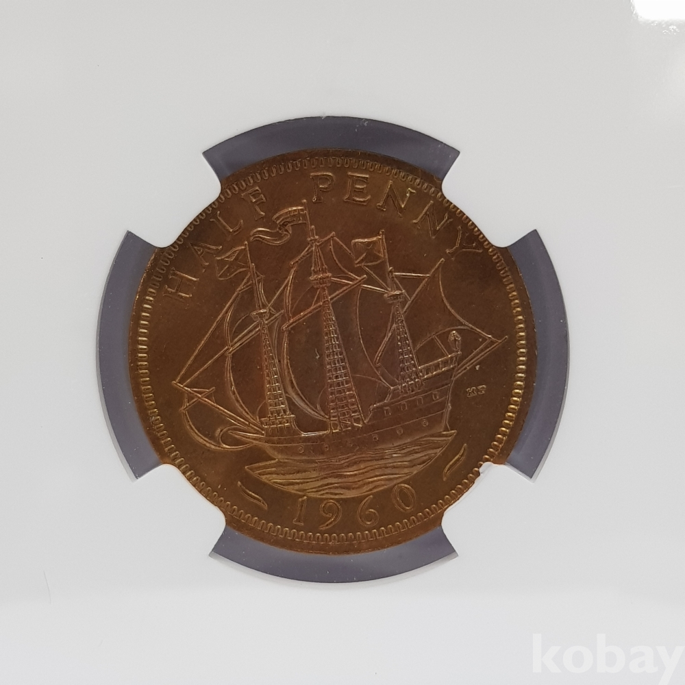 - 1960년 영국 1/2페니 프레데릭 셀러 NGC MS 66 그레이딩 주화