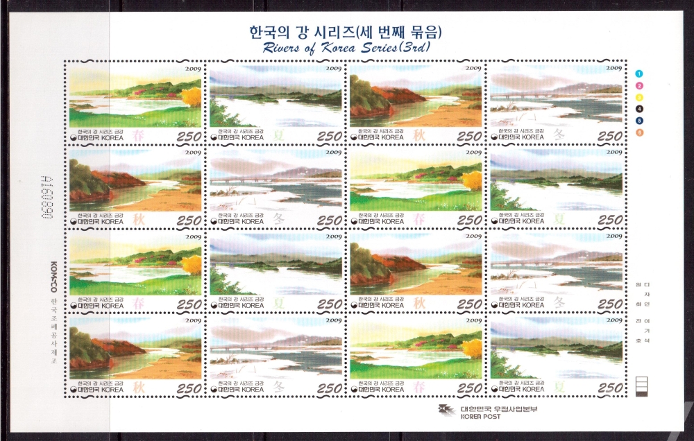 (한국전지) 2009.2.10 한국의 강시리즈(세번째묶음)-금강 sheet of 16 MNH