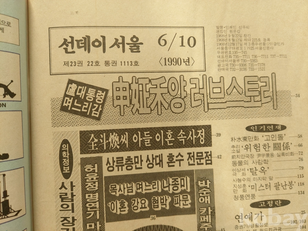 - 1990년 06월10발행.(제23권22호) 제1113호.