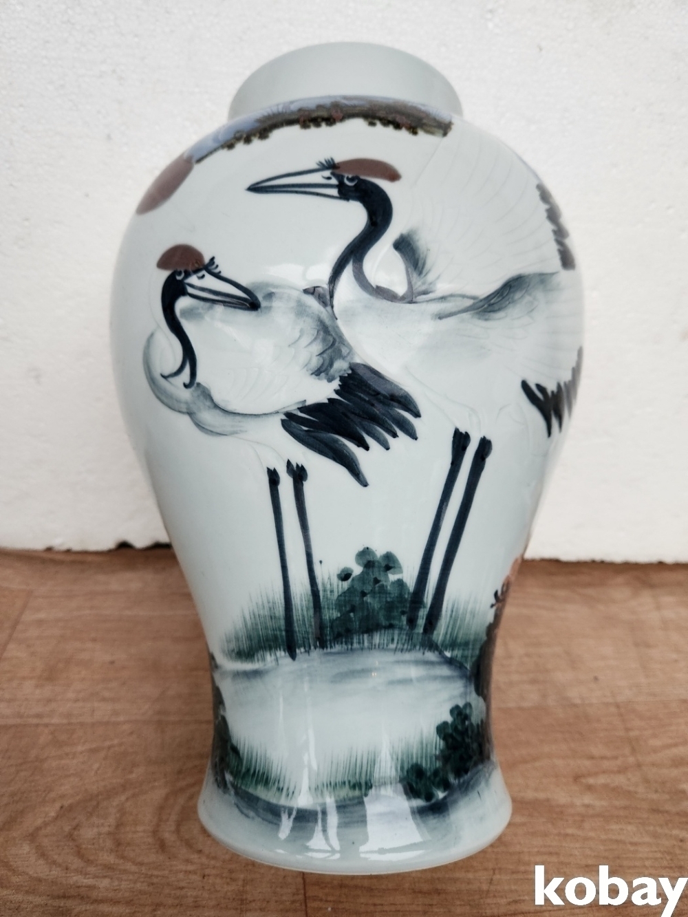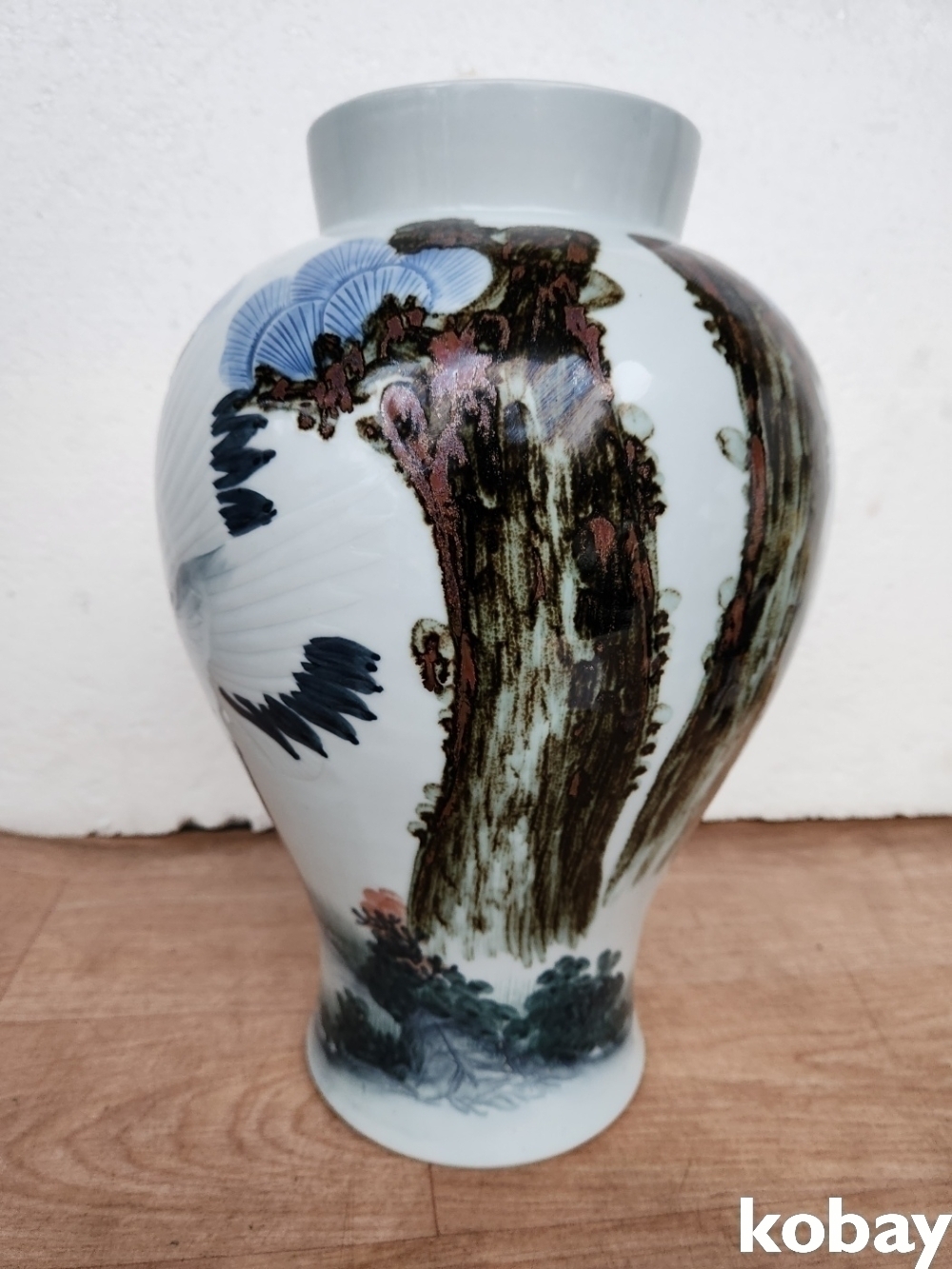 소나무 아래 학을 아름답게 표현한 도자기 입니다.