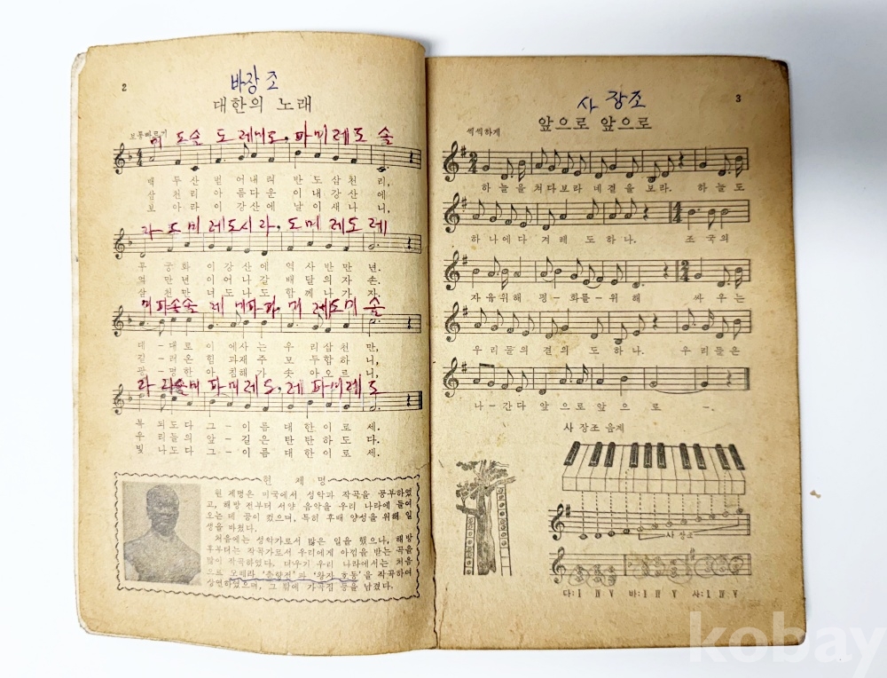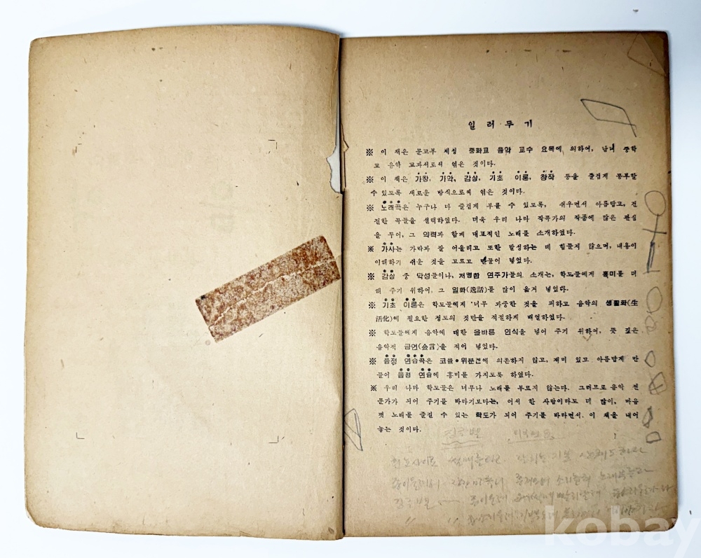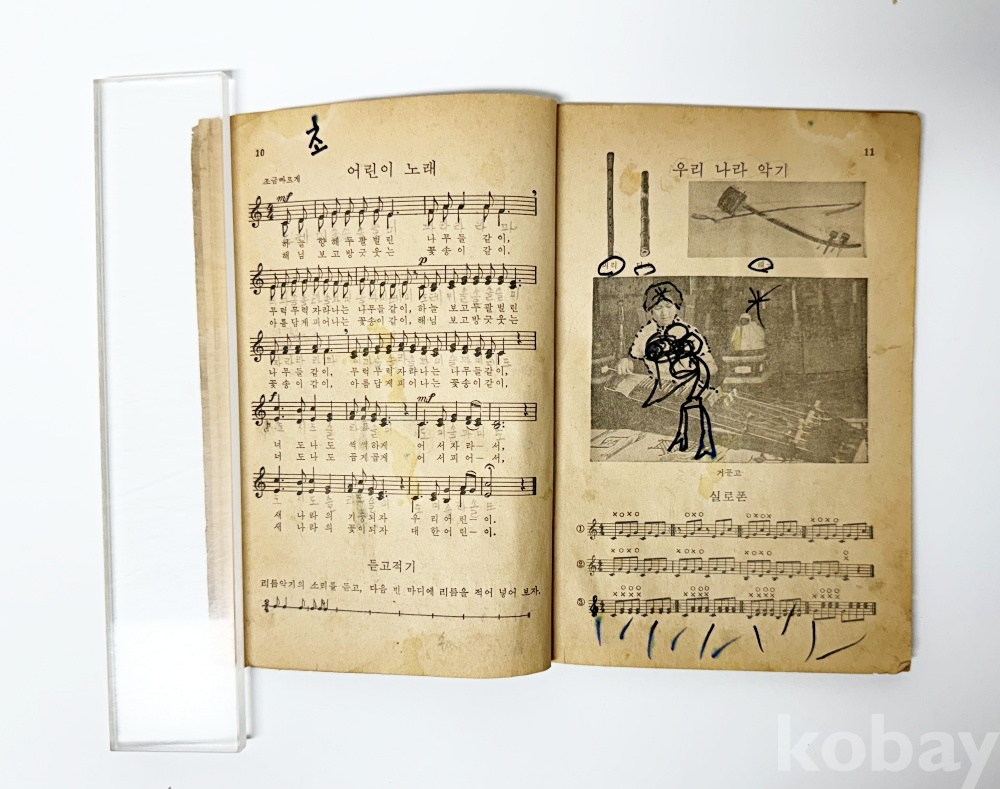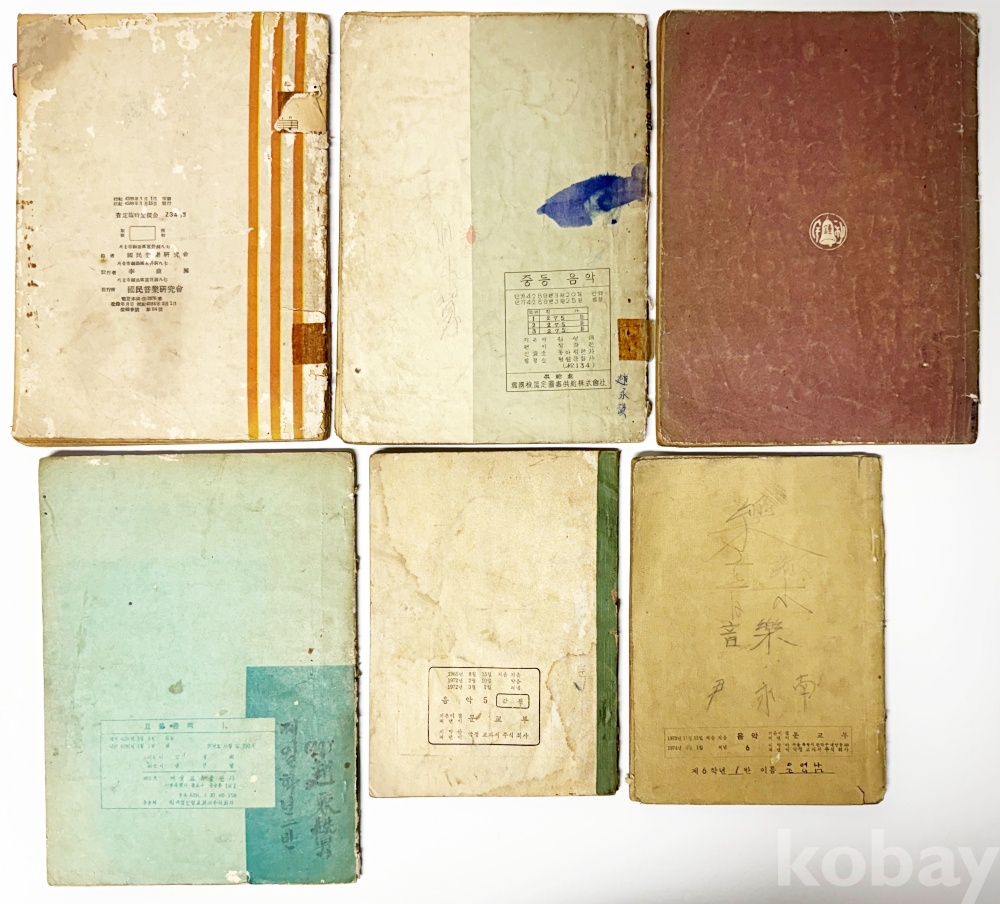 상품 설명 | 1) 남녀 중등음악교본 / 서울국민음악연구회 발행 / 1955년(4288) / 총 80p / 책등 손상, 표지 낡고 테이프 제거흔, 뒤표지 찢김 / 19 x 26 cm 2) 중등음악 2 / 형설문화사 발행 / 1956년(4289) / 총 80p / 책등 손상, 표지 낡고 테이프 수리 / 19 x 26 cm 3) 중학교 음악 3 / 서울 우종사 발행 / 1957년(4290) / 총 82p / 앞표지 잉크 자국, 책등 손상, 첫 페이지 테이프 수리, 일러두기 부분 및 마지막 페이지 낙서 / 19 x 26 cm 4) 고등음악 1 / 예술교육출판사 발행 / 1958년(4291) / 총 80p / 19 x 26 cm 5) 음악 5 / 문교부 발행 / 1972년 / 총 64p / 표지 낡음, 책등 손상, 4-14p 얼룩, 10-11p, 마지막 페이지 낙서 / 15 x 20.6 cm 6) 음악 6 / 문교부 발행 / 1974년 / 총 64p / 표지 낙서, 책등 손상, 61p 하단 모서리 찢김 / 14.8 x 20.6 cm | ||