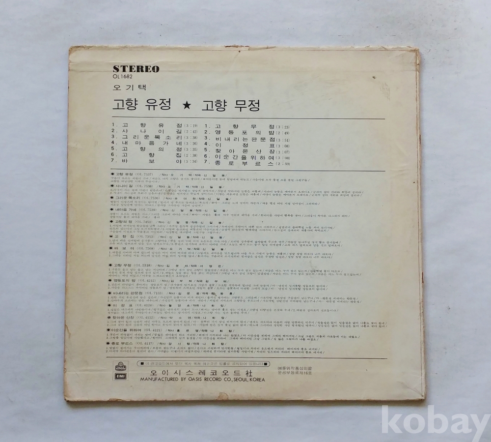 EX : 약간의 마모, 모서리 찢김 존재 음반상태