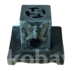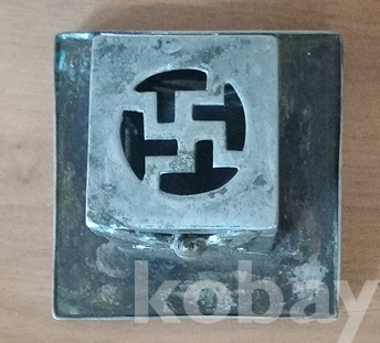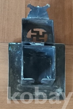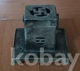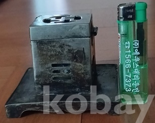 백동으로 담배통과 받침이 4각형입니다. 뚜껑의 가운데에 만자문이 그리고 전면에 황금빛이 도는 금동제? 범나비조각을 부착하여 한층 고급스럽게 만들었읍니다. 통의 앞면에 담배통이 들어가는 구멍에, 반대쪽에는 나뭇잎 모양이, 또다른 쪽에는 팔괘의 이離가 대칭으로 투각되어 있읍니다. 한편 이離는 사괘의 불火을 상징한다 하고.. 특히 앞면 나비조각은 금동?으로 장식하였읍니다. 물건이 그래선가 경매당시 많은 입찰자가 몰려 경쟁도 치열했지요. 상태는 사진에 보시듯 검푸른 녹소와 땟물 등 세월의 흔적들 보이는외 뚜껑의 개폐도 아주 정상적이고 흠잡을데 없읍니다