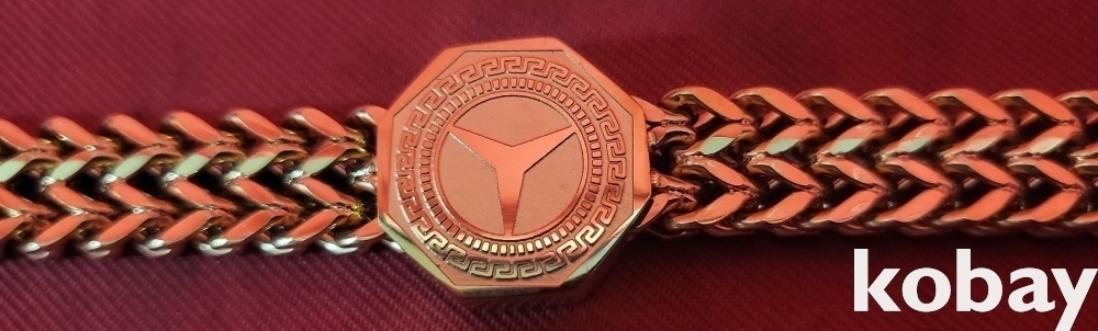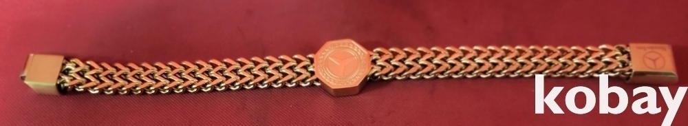 벤츠 마크가 새겨진 항금색 남,녀 공용 미사용 팔찌입니다,
