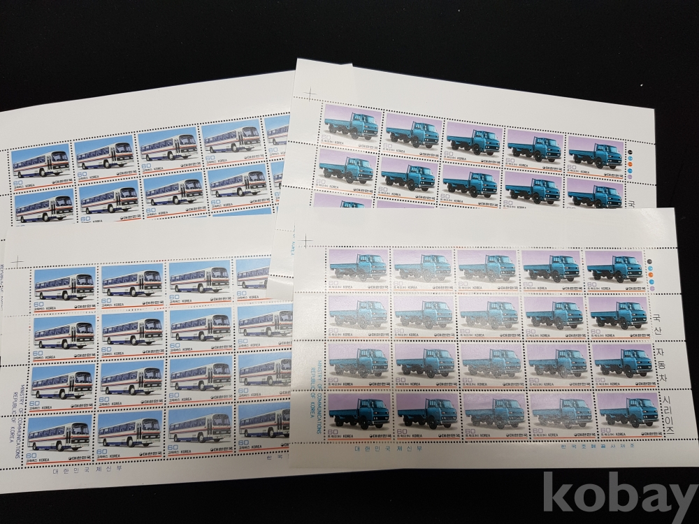 - 미사용 1983년 국산자동차시리즈 - 제 3집 전지 2종 4매 모음