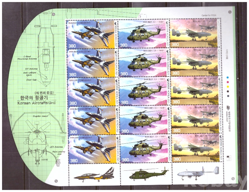 (한국전지) 2021.3.25 한국의 항공기(세번째묶음) sheet of 15 MNH