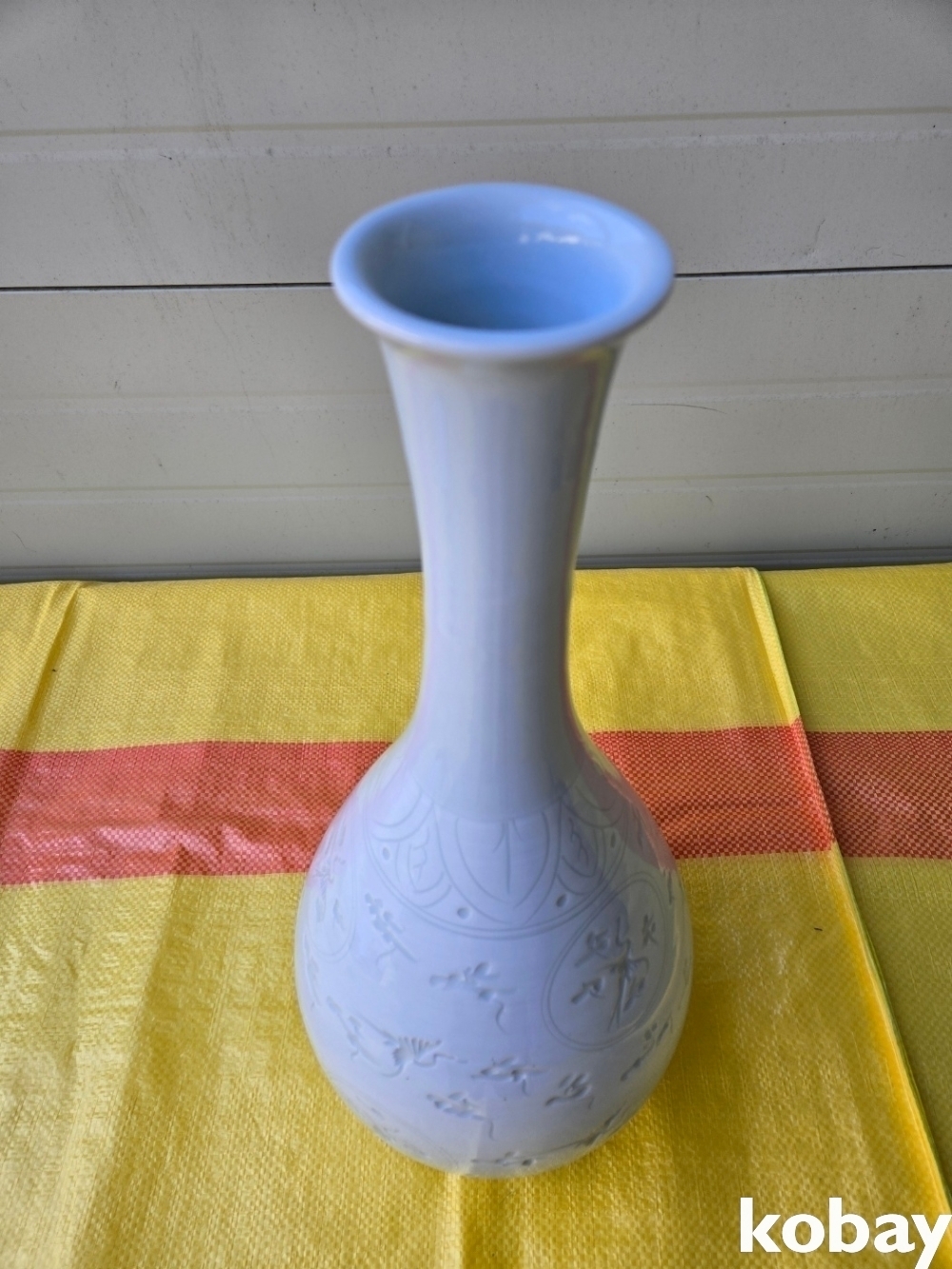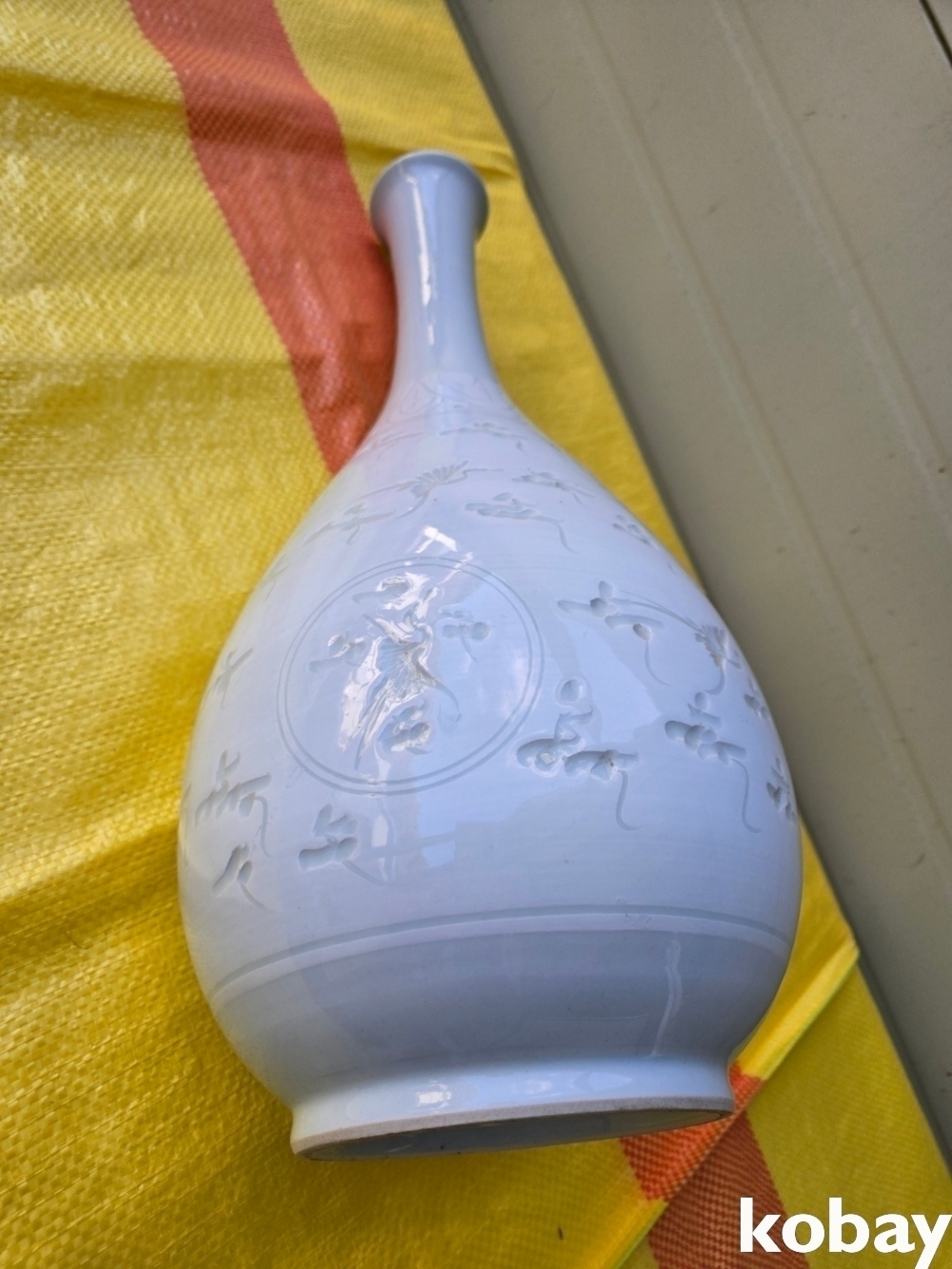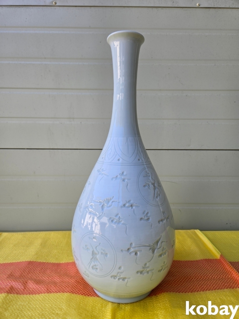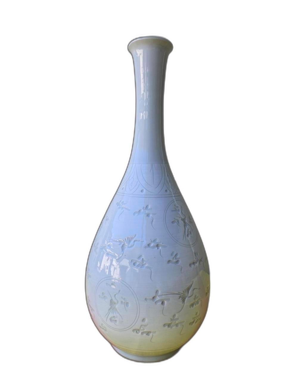 구름과 학 문양이 음각으로 있는 주병 도자기 입니다.