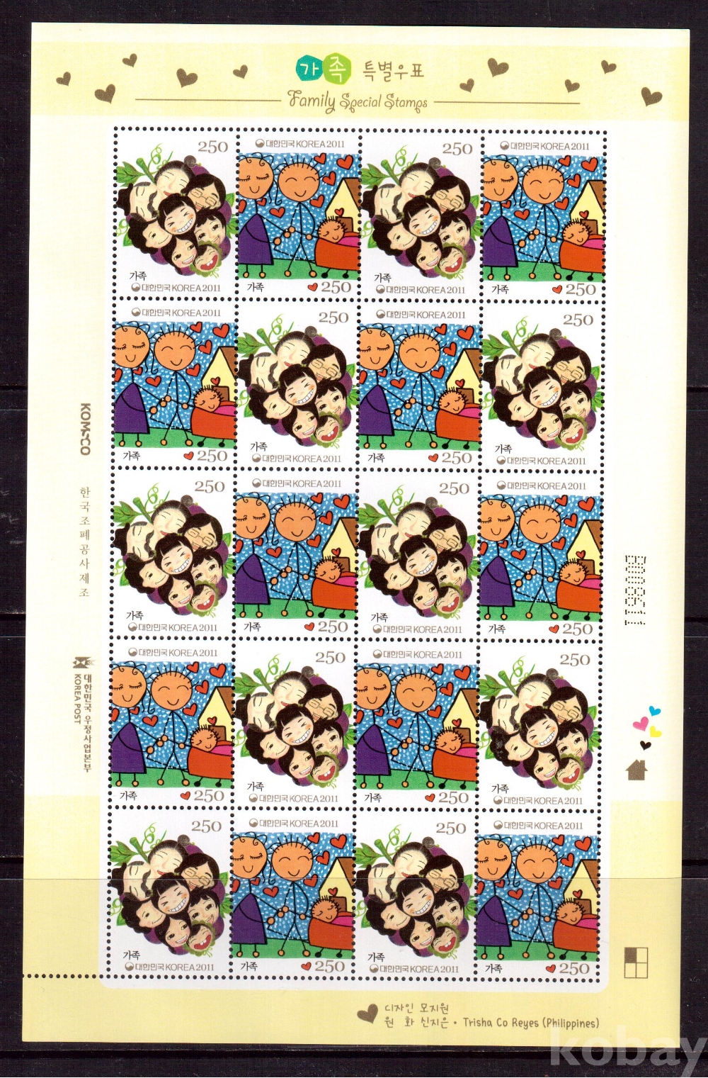 (한국전지) 2011.5.13 가족 sheet of 20 MNH