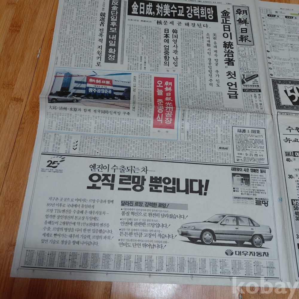 대우 르망 승용차 광고 조선일보 92년4월16일 올려드립니다