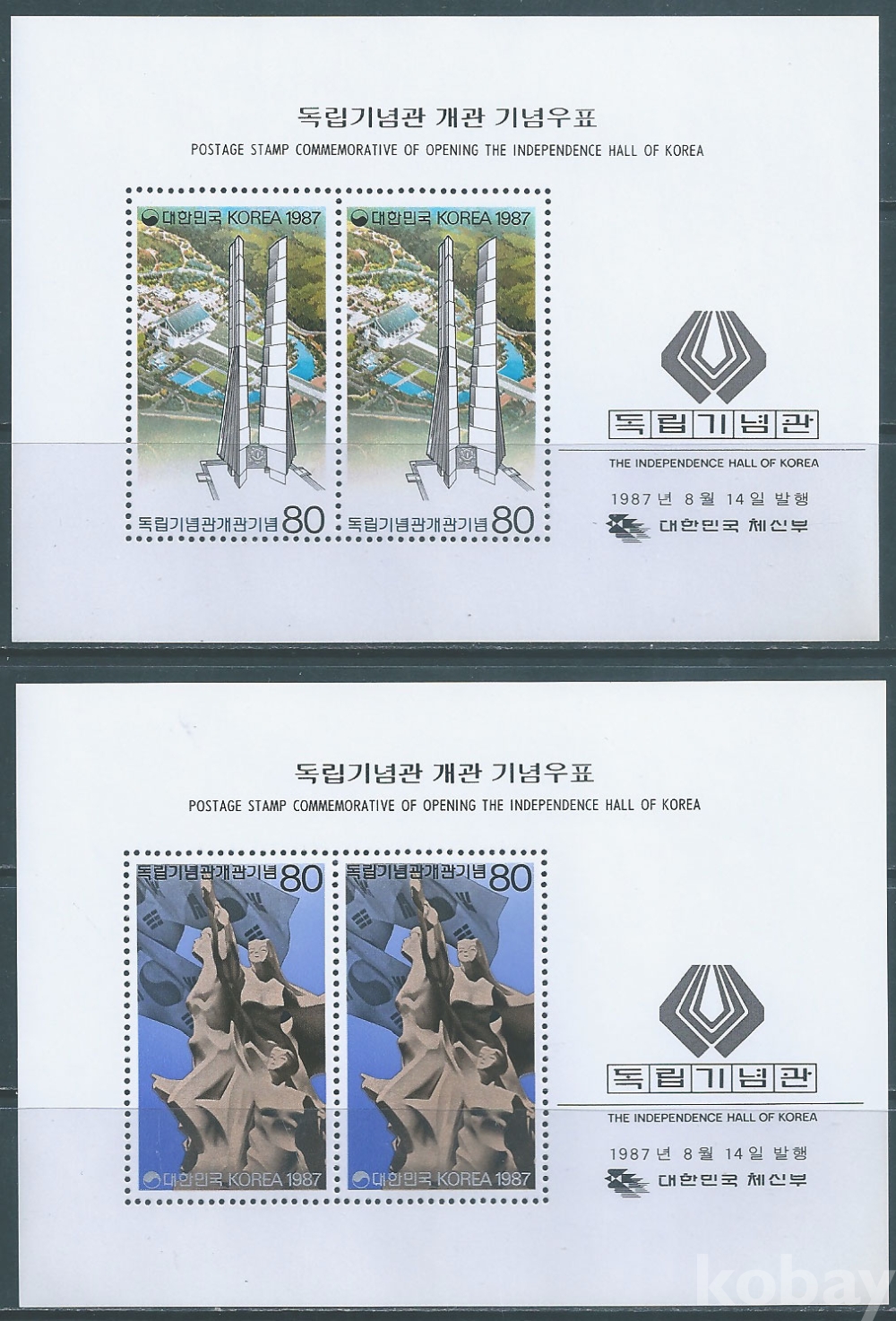 (한국시트-787)1987년독립기념관개관시트2종(미사용제)-MNH, VF