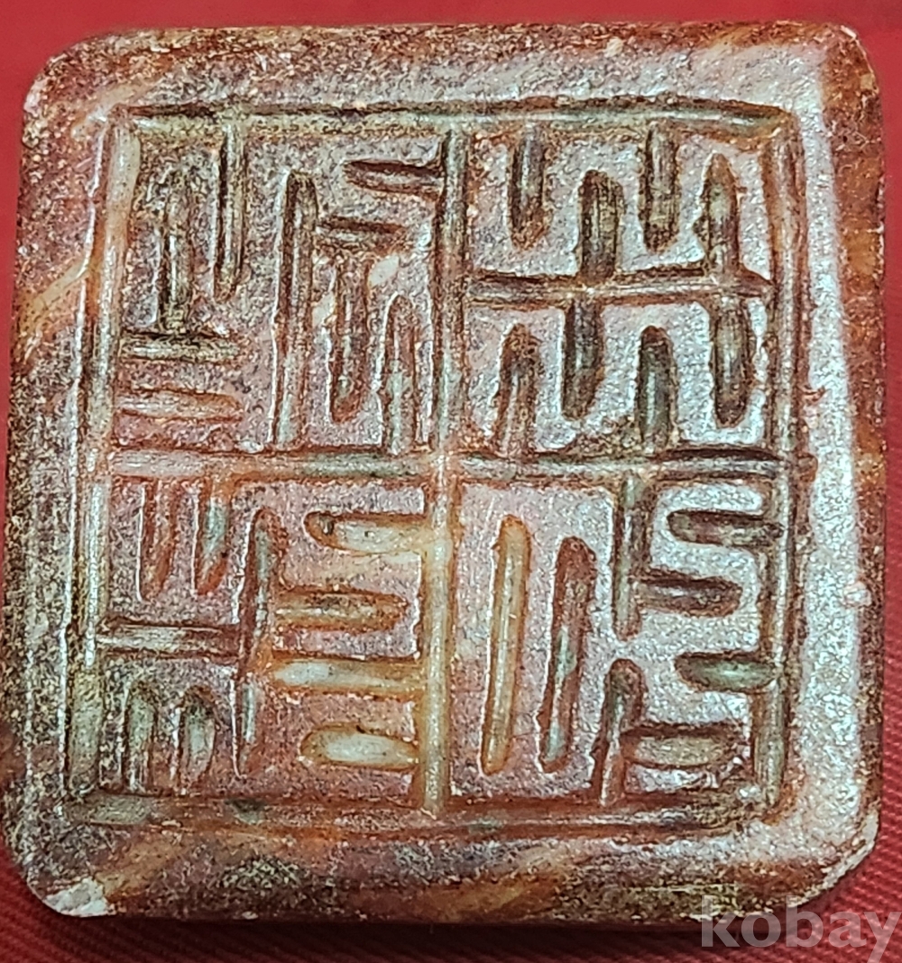 옥(玉)으로 만든 사각(四角)문양 도장(印章) 조각품입니다,