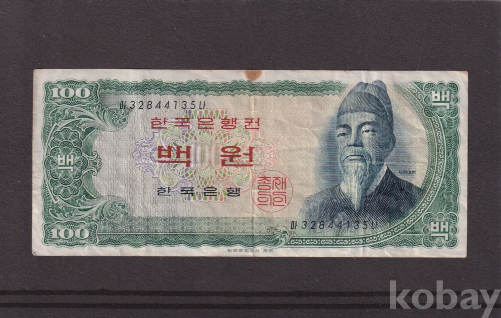 - 한국은행 1965년 세종 백원 32포인트 사용제 지폐