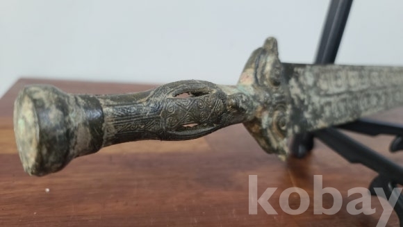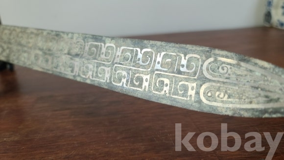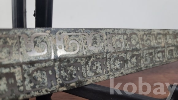 청동 은상감입니다. 매우 연식이 있는 골동품이고 그 제작 기법이 매우 독특합니다. 청동의 기물에 은을 입사히여 만든 작품으로 주로 부유한 귀족이나 왕실에서 사용하던 작품을 근대에 와서 재현한 작품으로 추정됩니다 은상감 기법은 주나라 시대에 처음 도입하였으나 작업 과정이 매우 복잡하고 일반에게도 잘 공개되지 않은 기법으로 숙련된 공인에게서 나오는 작품입니다
