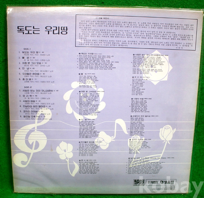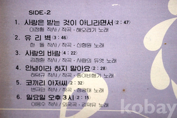 수록 곡 목은 사진을 참조하시기 바랍니다