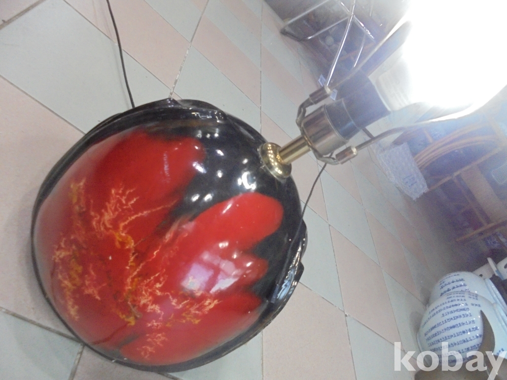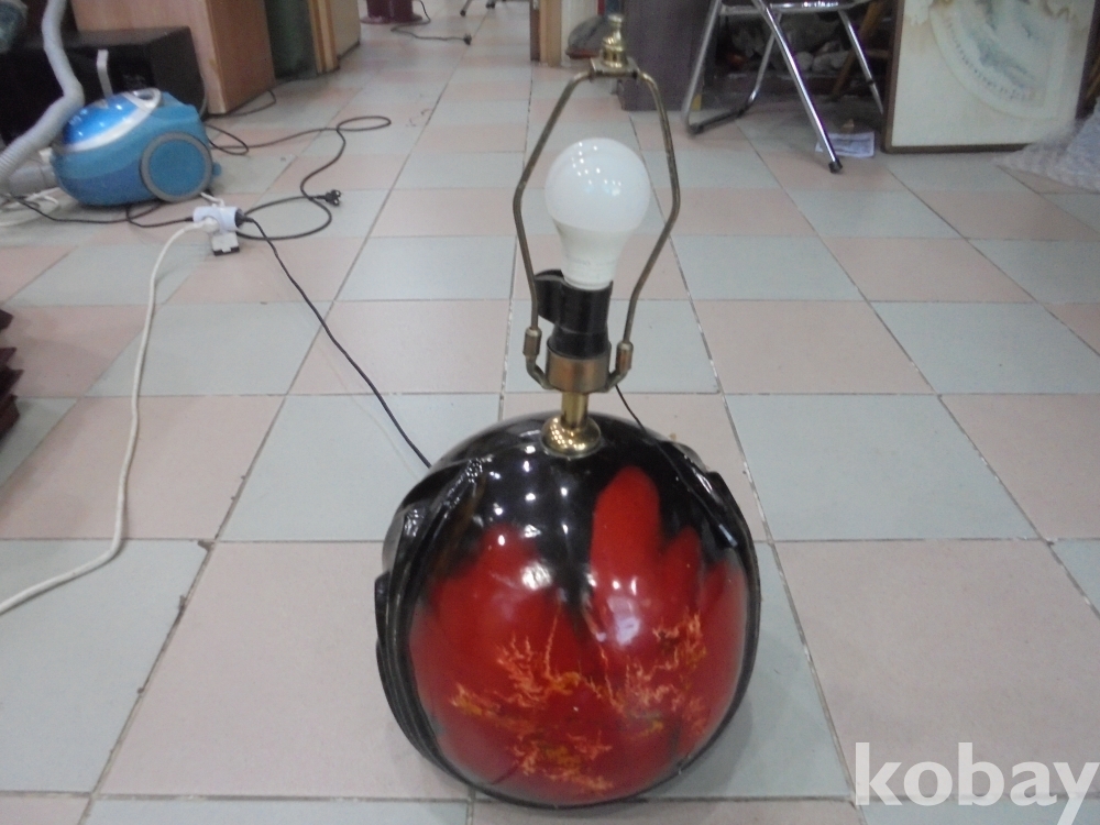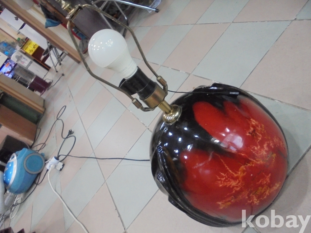여러번의 굽는과정을거처 만들기어려운 화려한 도자기바탕위에 크고 작은전구다마에 당기는 스위치로 전기 잘오는 둥근 화려한 도자기위의