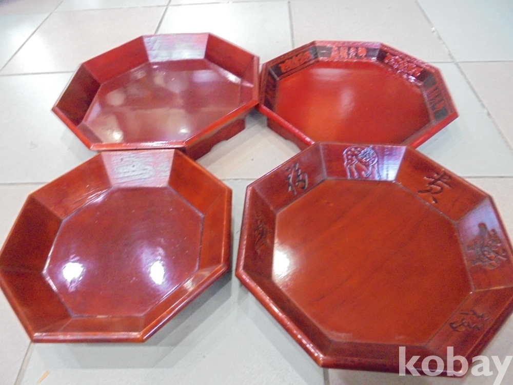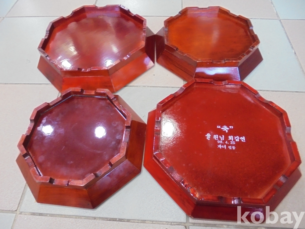 좋은 은행나무류로 2점은 군방화 사슴 귀복자와 귀무뉘와 수복수명 자가들어간 아까워 미사용한 틀이맞는 고급 과반겸 찻반 4점 1셋트