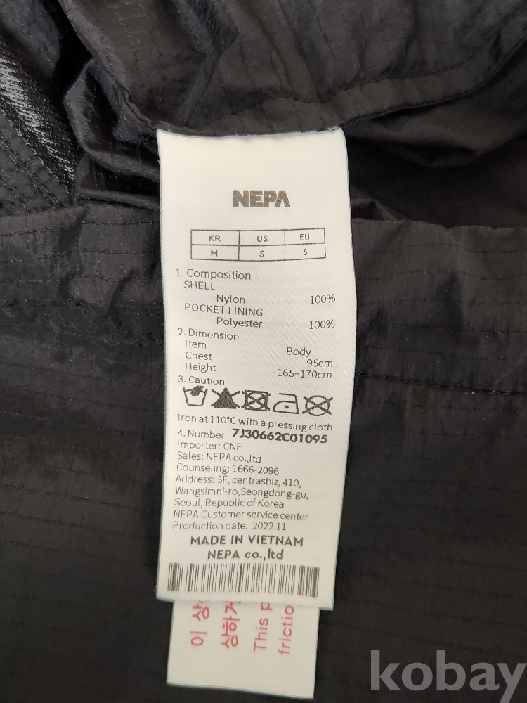 - 겉감은 100% 나일론, 안감은 100% 폴리에스터로 제작되었습니다