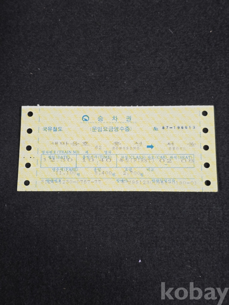 (((철도자료/지하철자료))) 오래전 국유철도 승차권 (새마을호) (홍성-서울)