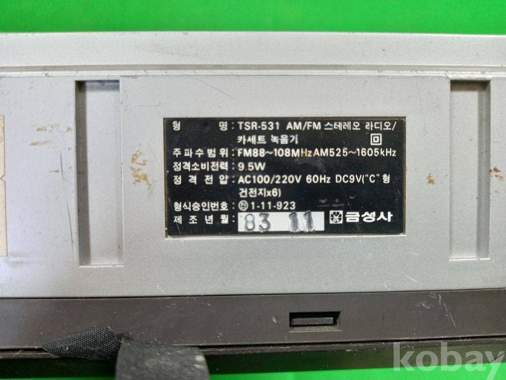 이 제품은 1984년 금성사(현 LG전자)에서 출시한 빈티지 카세트 라디오인 TSR-531 STEREO 모델입니다.