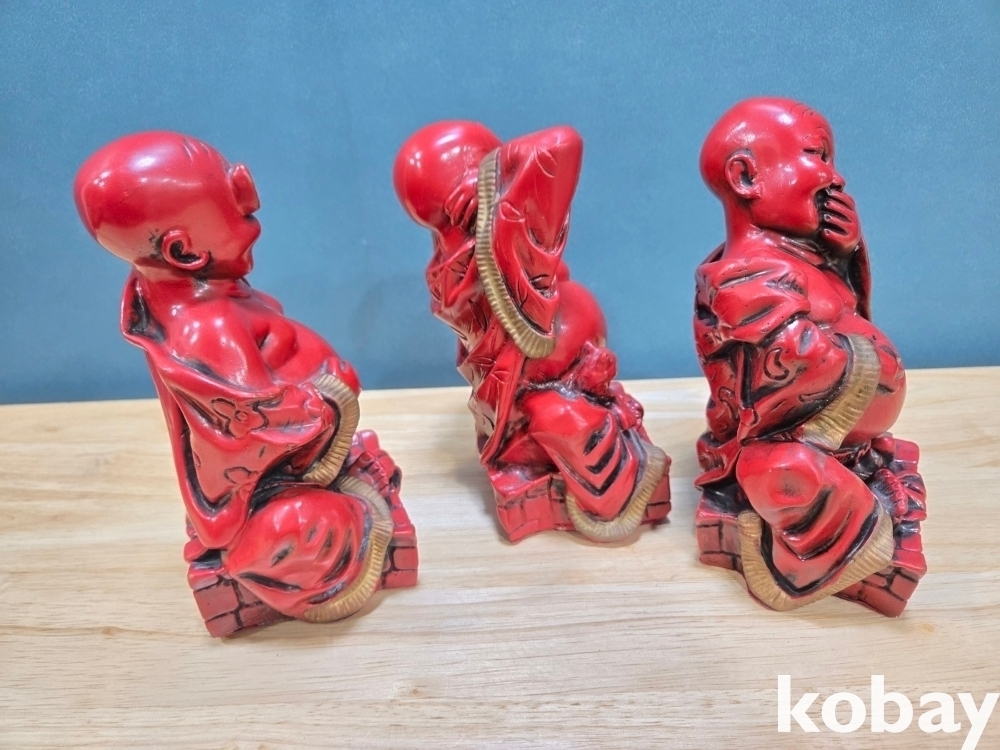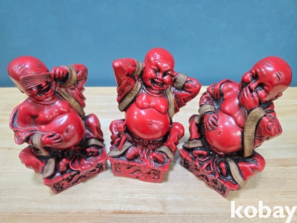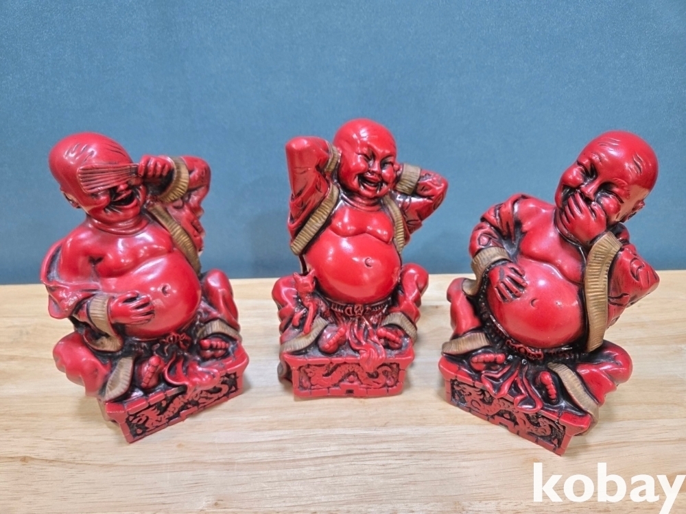 귀 막고, 눈 가리고, 입 닫고 표현 포대화상 형상3개 입니다.
